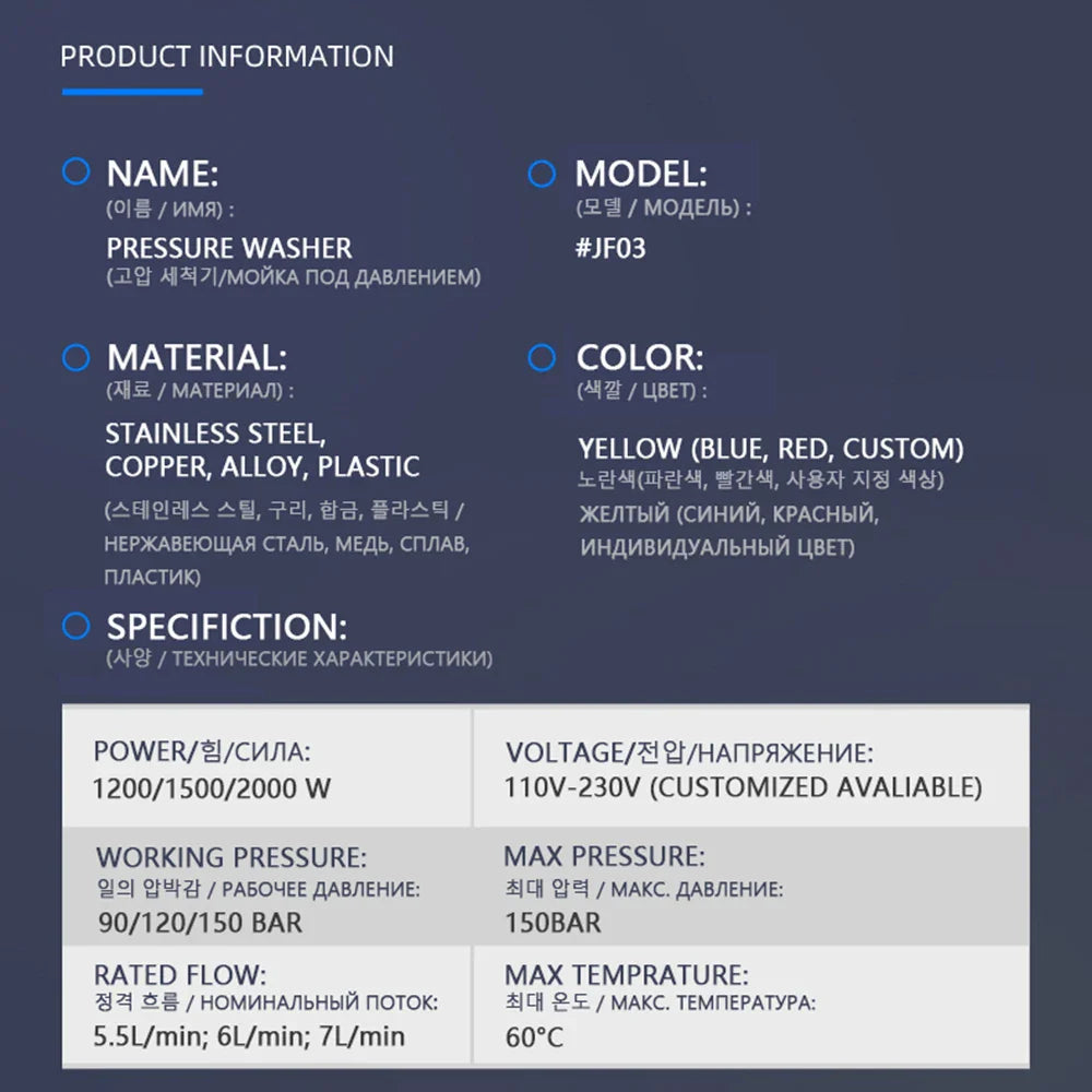 JUNGLEFLASH 1200W/1500W/2000W Water Jet High Pressure Cleaner Waterjet Sprayer Motorcycle Washing Machine Care Auto Parts