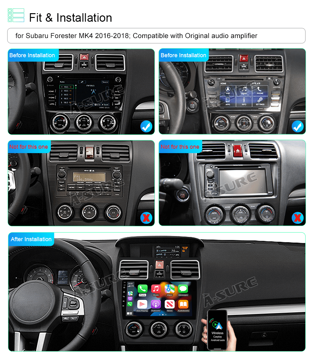 Junhua Wireless CarPlay Android 10.1 Car Radio, 9" HD Touch Screen, for Subaru Forester 2016-2018