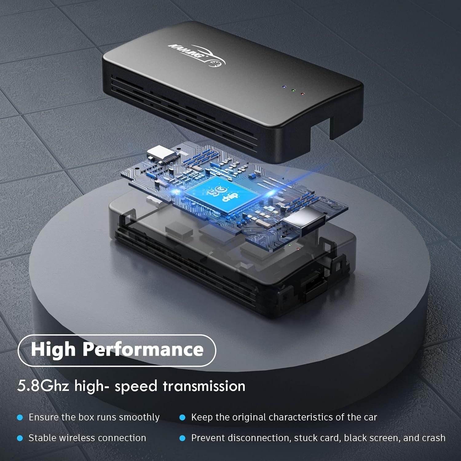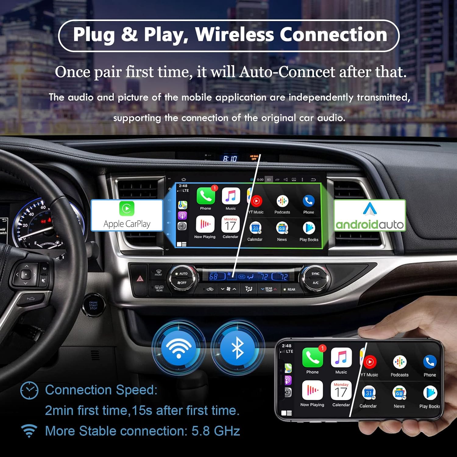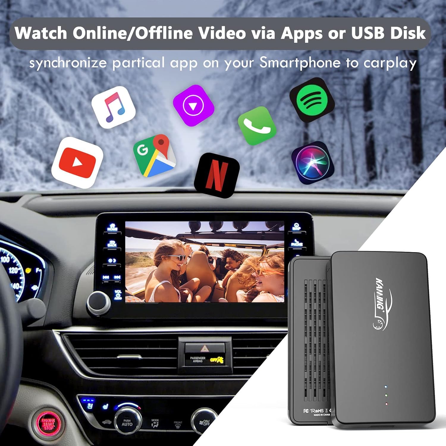 KAMING Carplay Adapter, Compatible with iPhone and Android Phones, Wireless and Plug and Play, 5G Dual-band Signal Filtering Technology, Supports Netflix, YouTube, and GPS