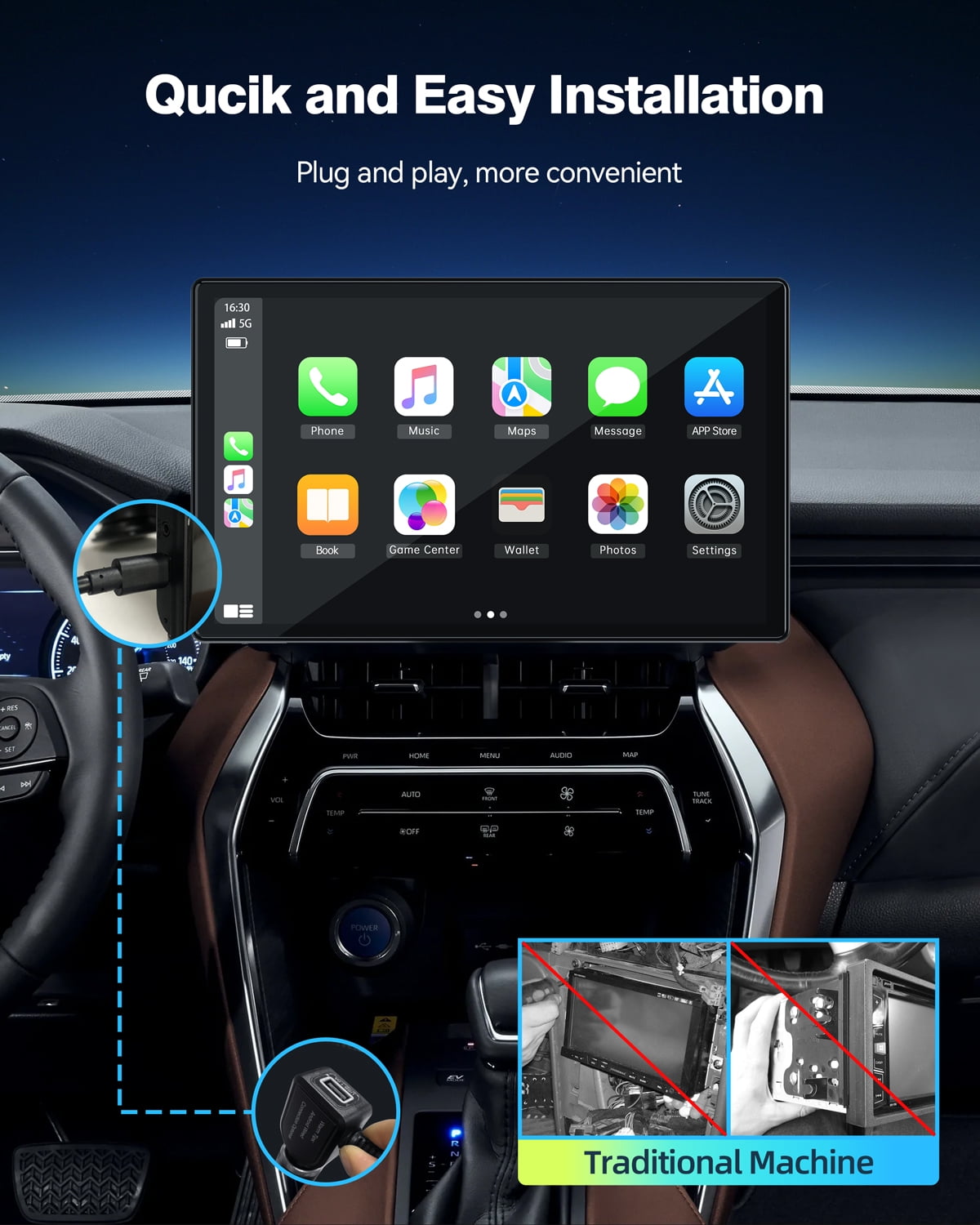 This LAMTTO wireless carplay car stereo support CarPlay and Android Auto. You just need to get into your car and your Smartphone will automatically connect to the car play. With wireless drive play screen, you can access your smartphone's apps, maps, music, videos, and other features. -
