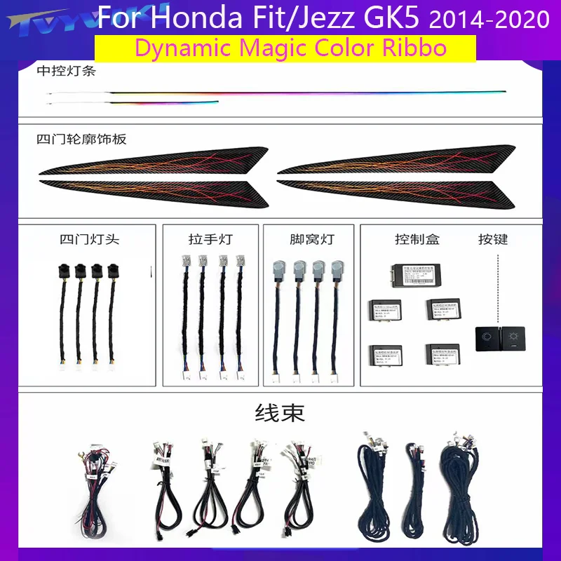 LED Car Lnner Ambient light For Honda Fit Jezz GK5 2014-2020 Ribbo Grid Dynamic Magic Color Ambience Lamp Button +APP Contr