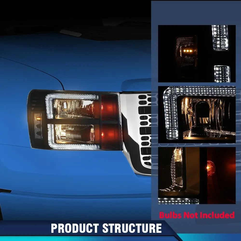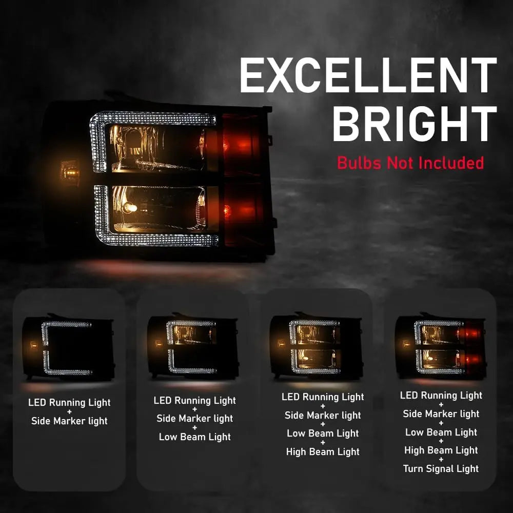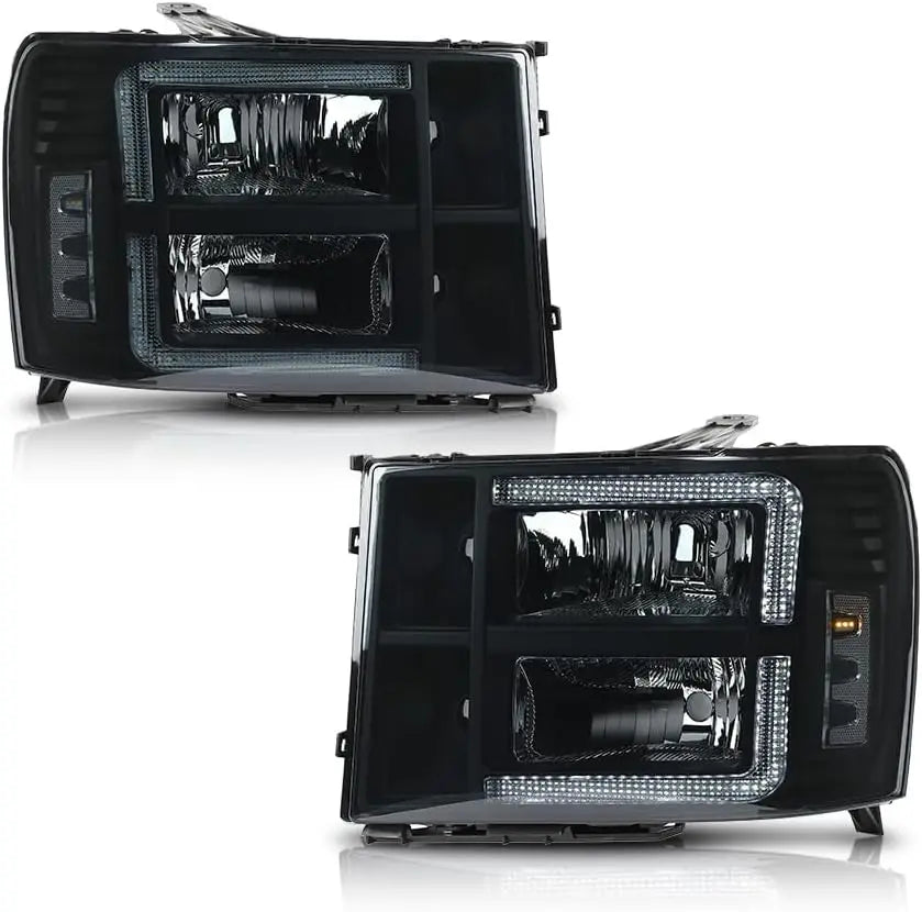 LED DRL Headlights, Compatible with GMC Sierra 1500 2007-2013/Fit Sierra 2500HD 3500HD 2007-2014 (Not Fit 2007 Sierra Classic) Smoke lens Black Housing Clear Reflector