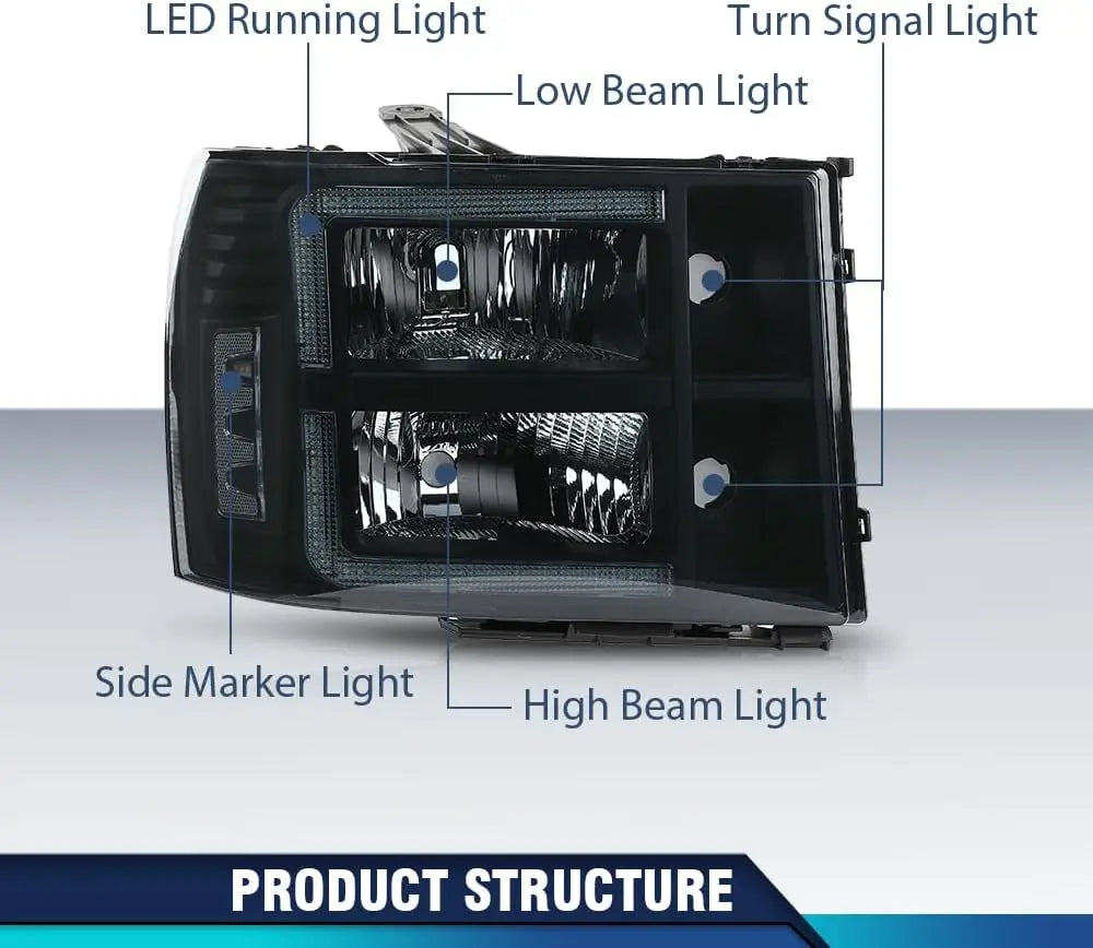 LED DRL Headlights, Compatible with GMC Sierra 1500 2007-2013/Fit Sierra 2500HD 3500HD 2007-2014 (Not Fit 2007 Sierra Classic) S