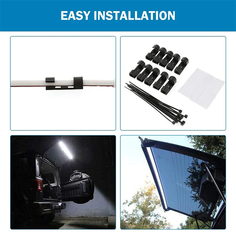 - Easy Installation. All you need to do is tear the 3M sticker and stick the light bar in the right place. There are 2 ways to connect to the power supply, you can plug the cigarette lighter plug or connect the battery wire to the power supply for using.