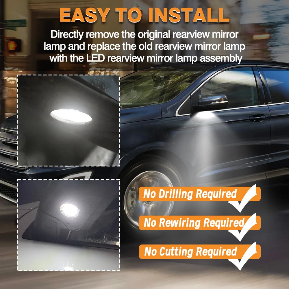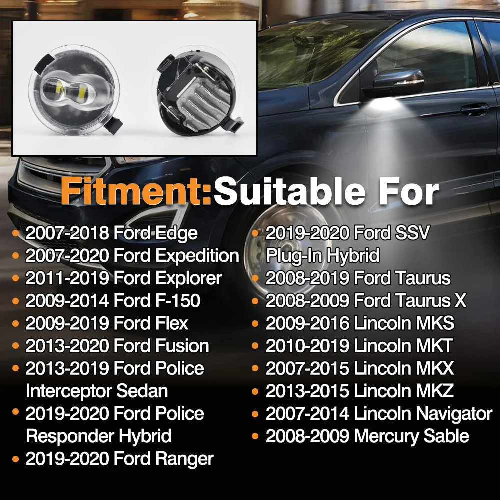 LED Side Mirror Puddle Light Assembly For Ford F150 Ranger Edge Fusion Explorer Expedition Flex Taurus X 6000K White Lights