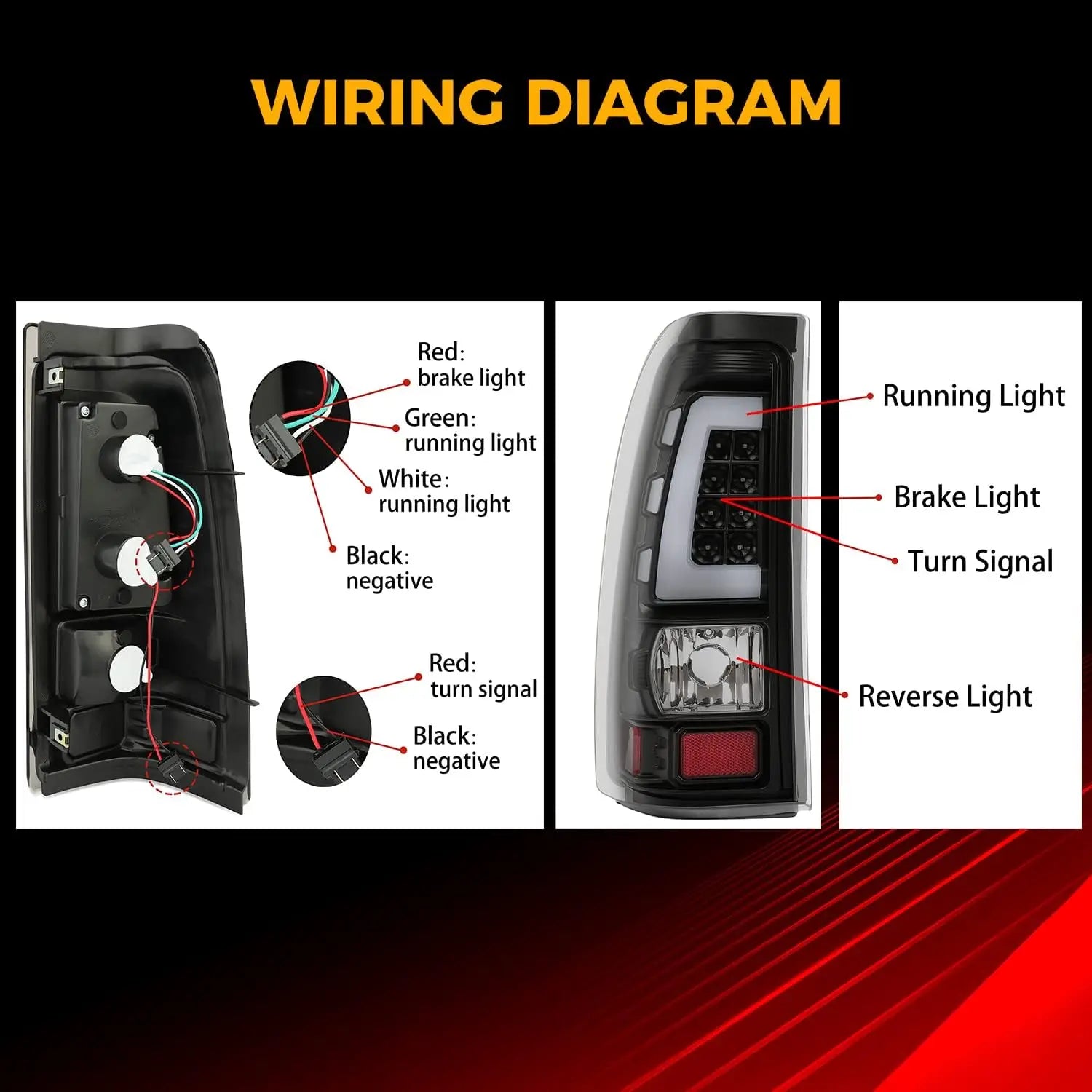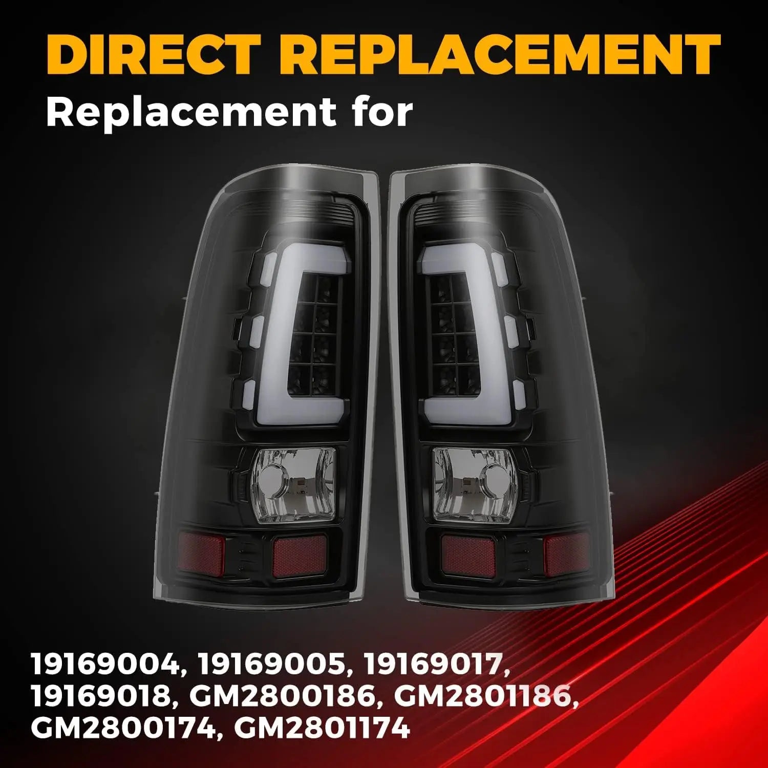 FITMENT- LED Taillight Tail Lights Lamp LED Tube Bar Compatible with 1999-2006 Chevy Silverado 1500/1500HD; 1999-2006 Chevy Silverado 2500/2500HD; 2001-2006 Chevy Silverado 3500; 1999-2002 GMC Sierra 1500/1500HD; 1999-2002 GMC Sierra 2500/2500HD; 2001-2002 GMC Sierra 3500. Fits Fleetside Bed Models Only. Don't Fit Stepside Bed Models