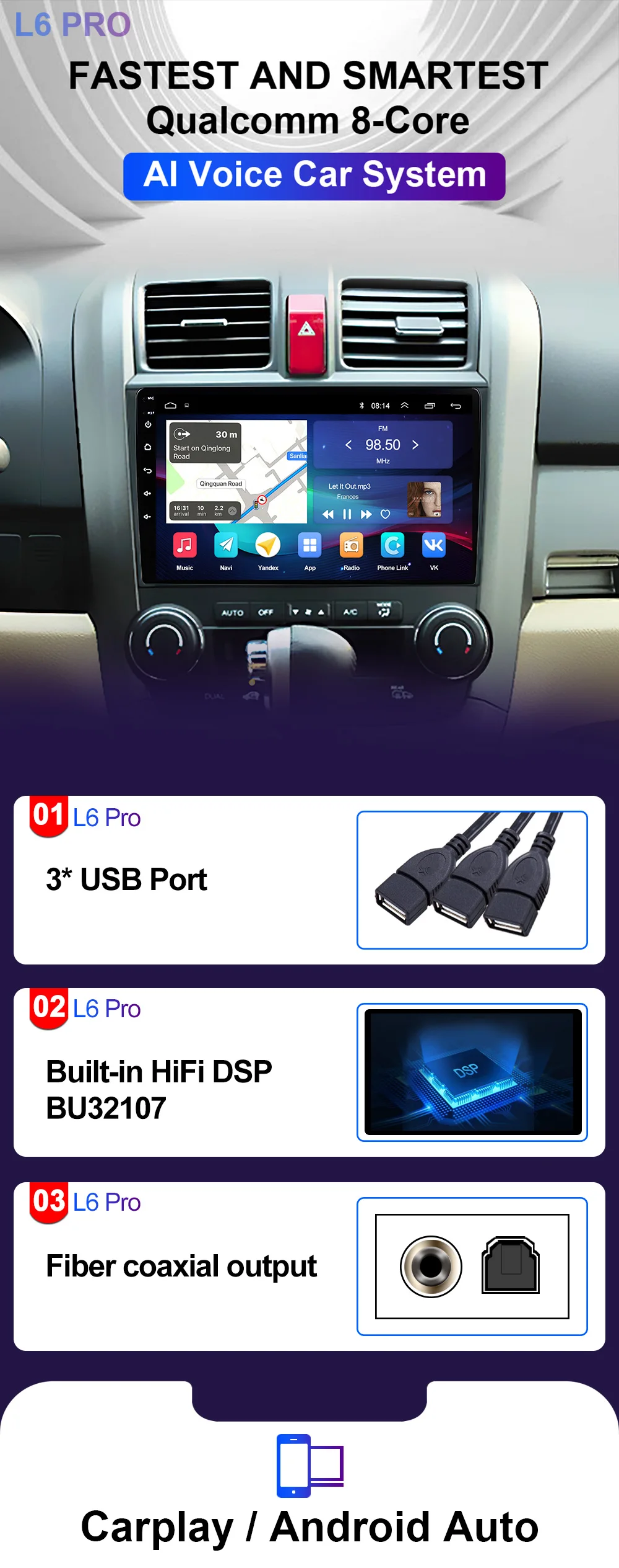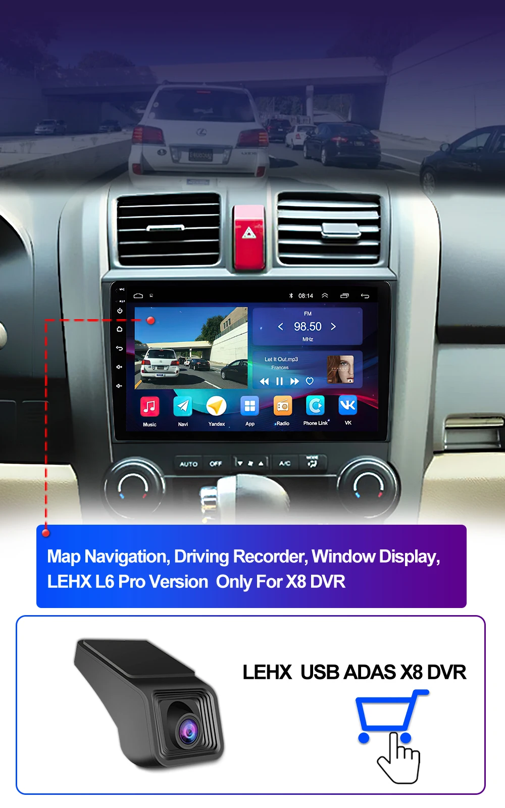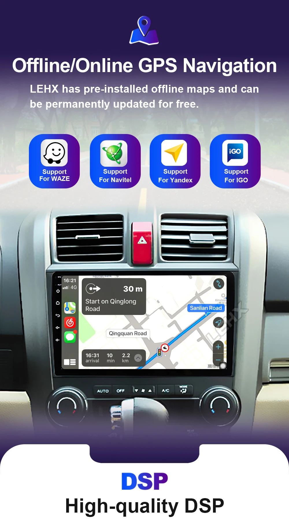 LEHX L6 Pro supports BT5.1 builtin smart Bluetooth system, which can support mobile phone Bluetooth pairing, mobile phone music, hands-free dialing, clear calls, and ensure your driving safety.