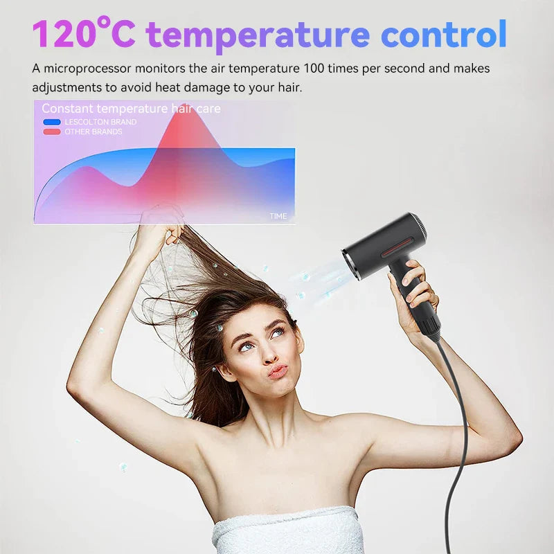 * Lescolton hair dryer is equipped with a 110,000 RPM high-speed brushless motor, wind speed reaches 60m/s, which is 2x faster than traditional hairdryers, hair drying only takes 3-5 minutes.