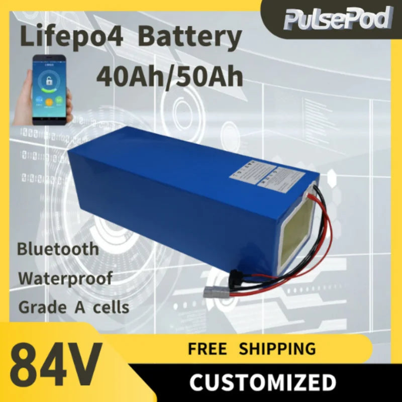LiFePo4 27S 84V 24S 72V 40Ah 50Ah lithium battery with BMS for inverter two wheel small vehicle 3000W 4000W 5000W 6000W