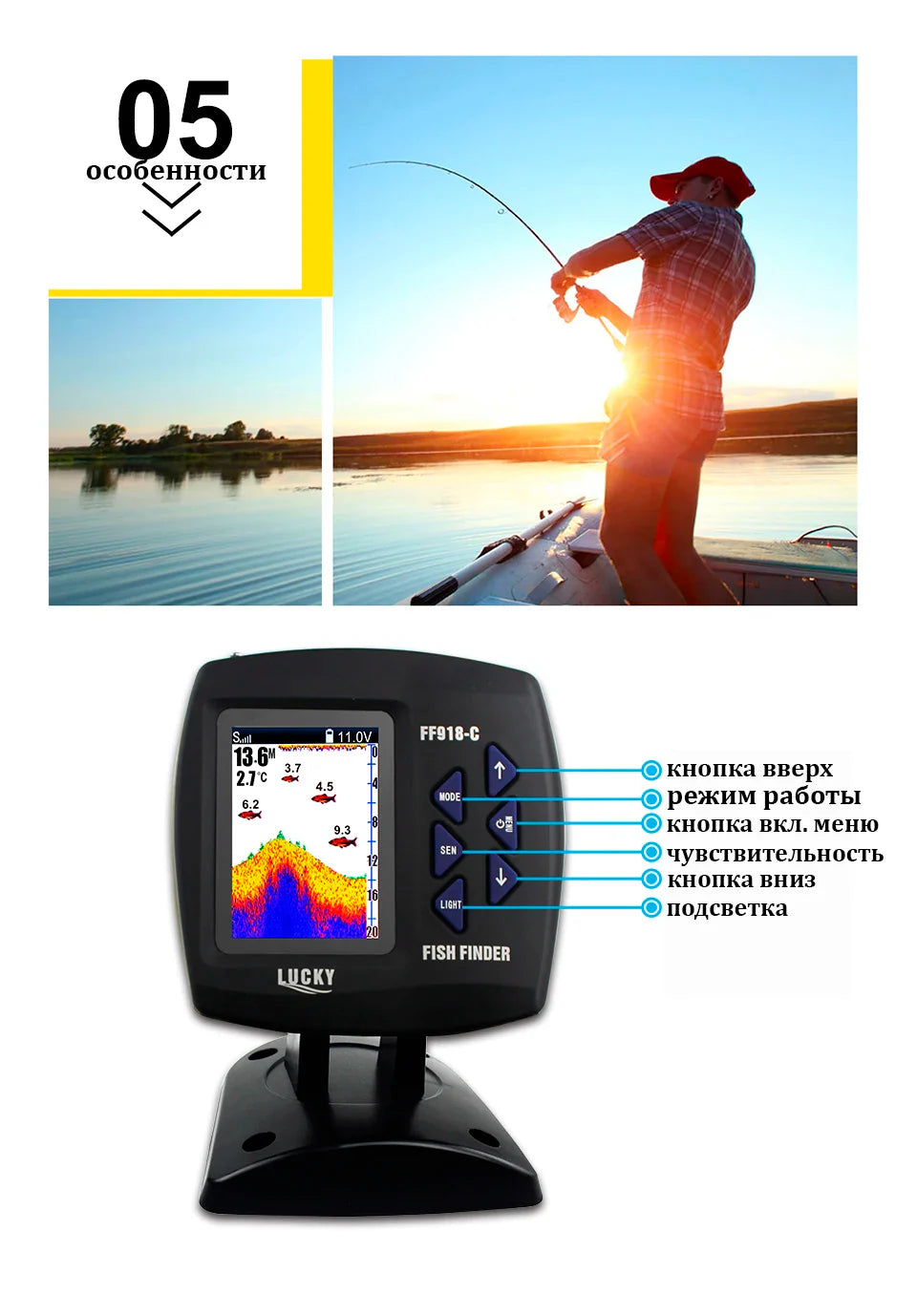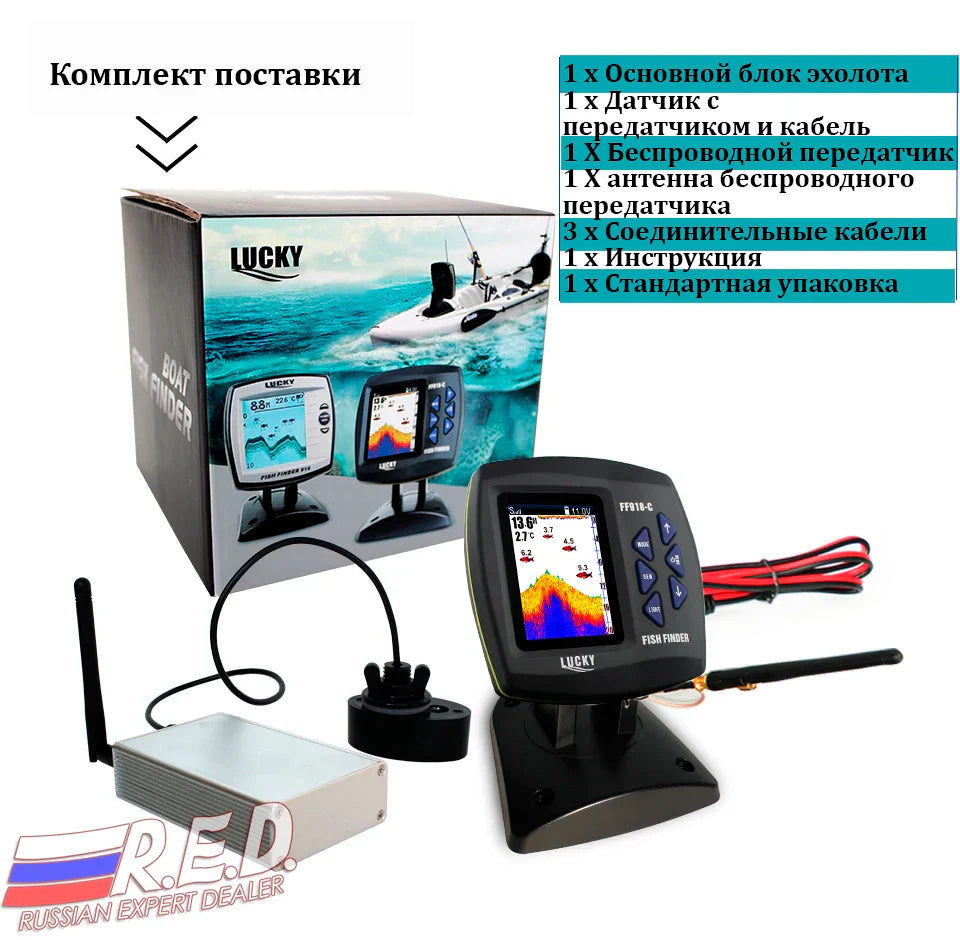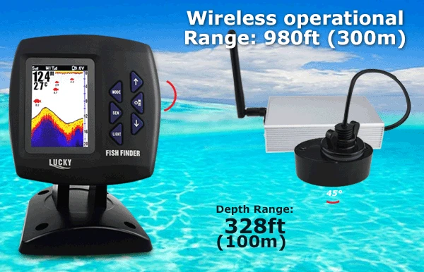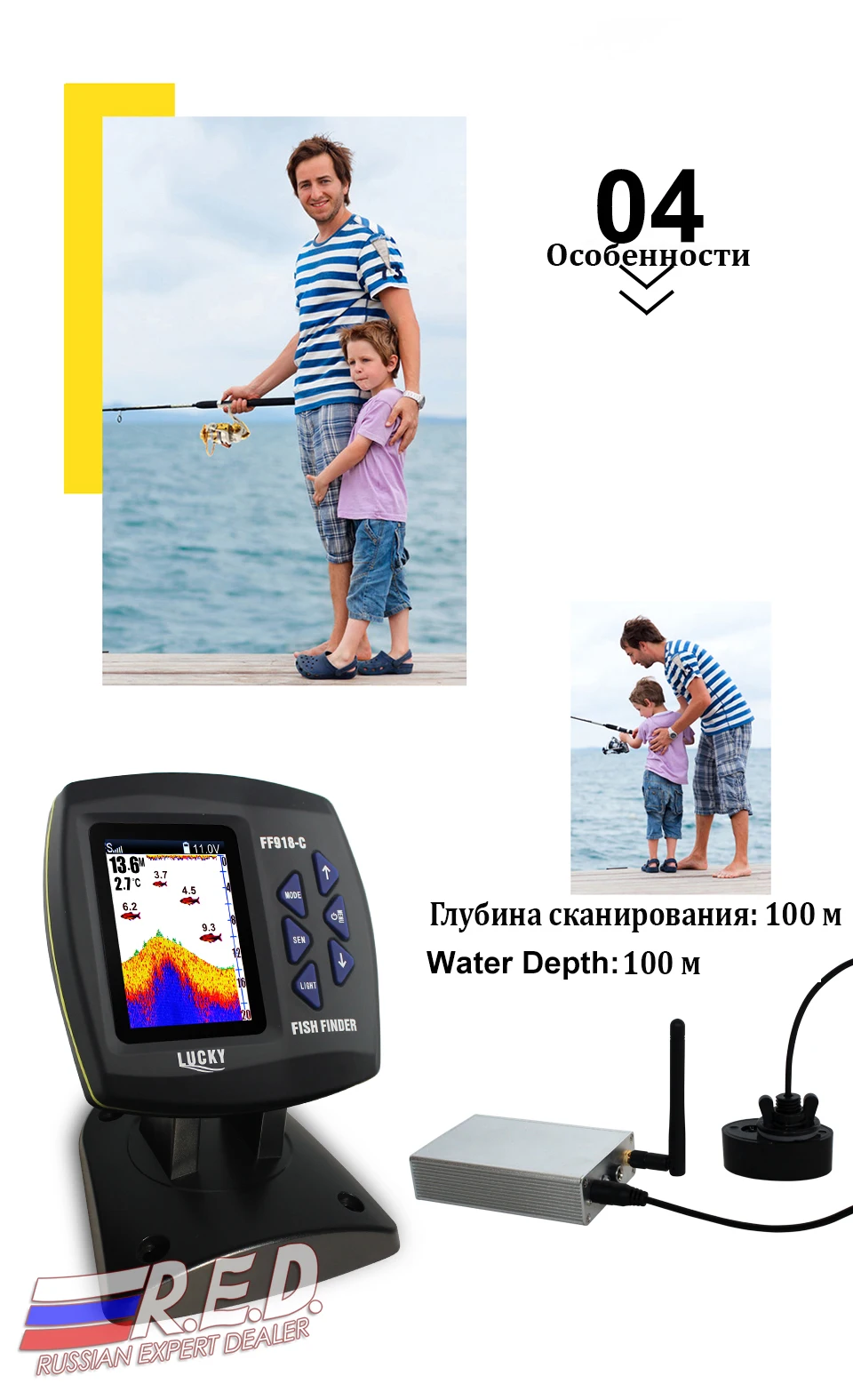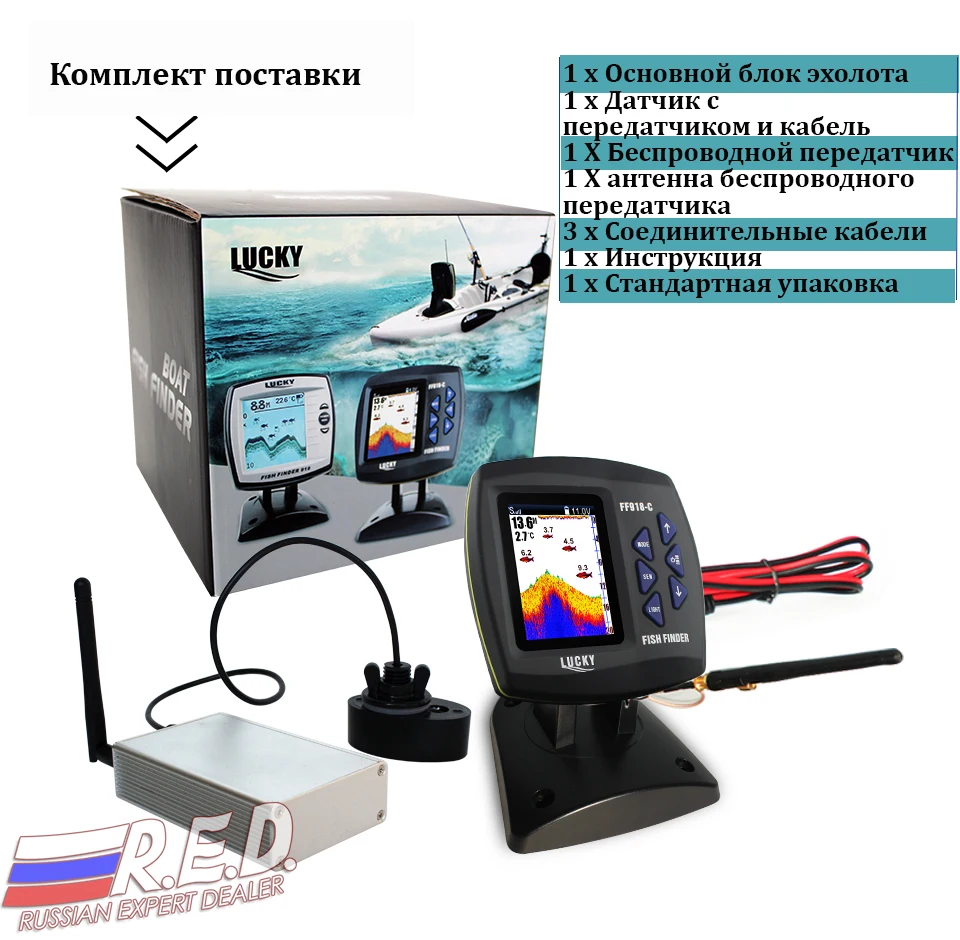 lucky FF918-CWLS Russian Version Color Display Boat Fish Finder wireless operating range 300 m Depth Range 100 M fishfinder