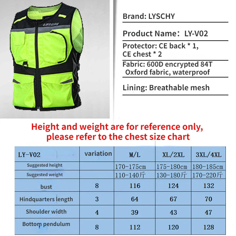 LYSCHY Motorcycle Reflecting Vest Winter Reflective Bike Jacket Men Motocross Riding Equipment with Protective Gear Safety Vest
