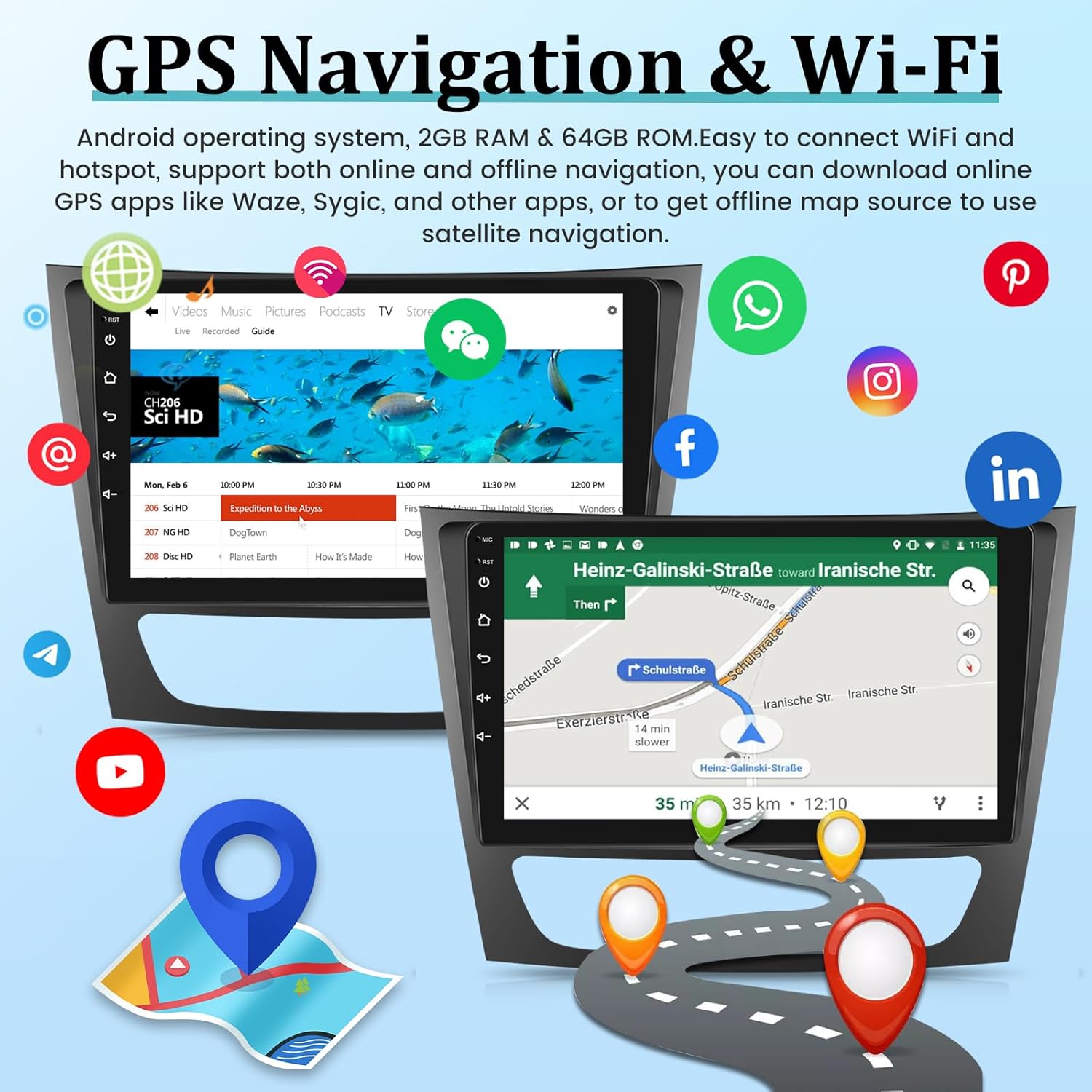 Mercedes-Benz Android Head Unit [4+64G] Android 13 Car Radio for Mercedes-Benz E-Class W211 / CLS-Class 2005-2008 - 9 Inch Touchscreen HiFi Audio - Wireless Carplay and Android Auto/WiFi/GPS/Mirror Link/SWC + AHD Backup Camera