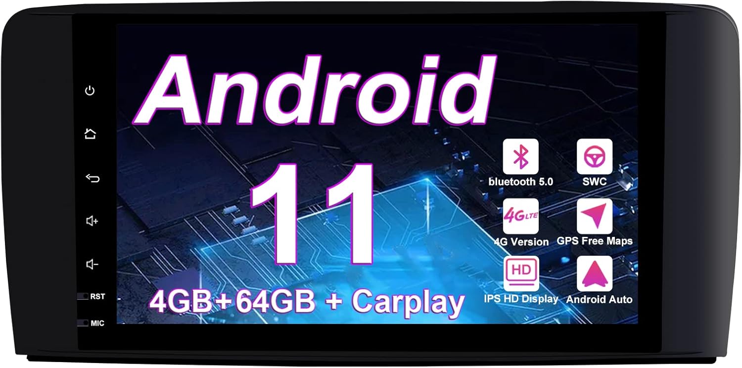 Mercedes-Benz Android Head Unit Android 13 Car Radio Stereo for Mercedes-Benz GL ML Class W164 X164 ML350 ML450 ML500 GL320 GL450 Octa Core 4GB RAM 64GB ROM IPS Multi-Touch Screen Double Din Wireless CarPlay