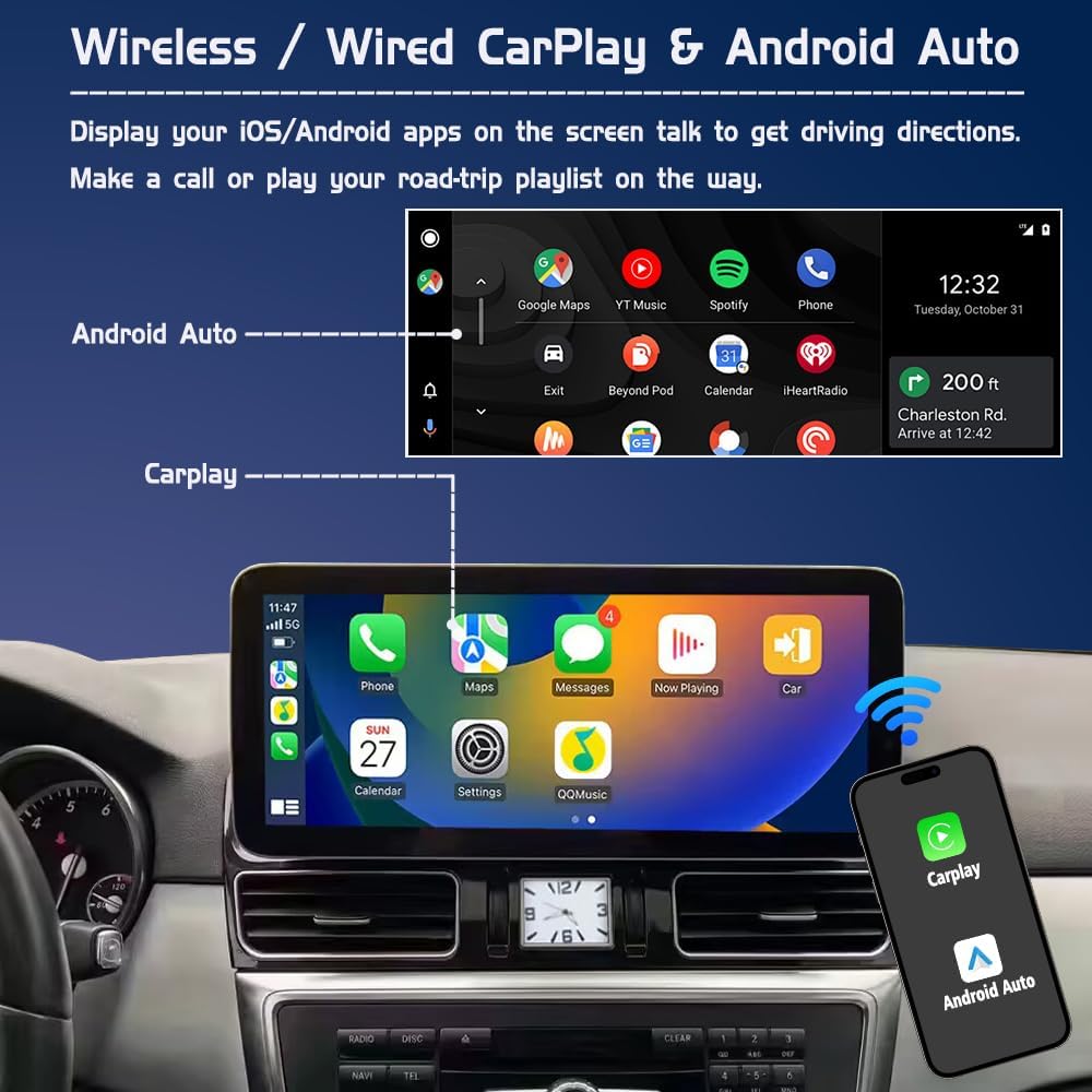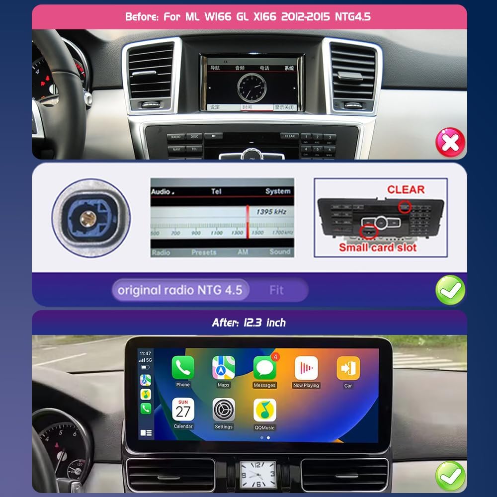 Mercedes-Benz Android Head Unit Android 13 Qualcomm 685 Chip Car Radio Dual System For Mercedes Benz ML W166 GL X166 GL300 ML350 NTG 4.5 2012-2015 Auto Stereo Replacement GPS Navigation CarPlay Android Auto Multimedia Player 8+128GB