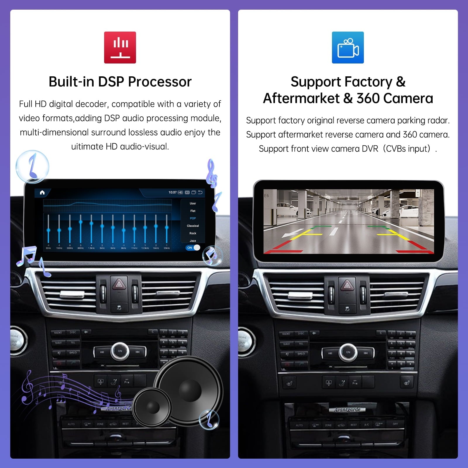- 4. Support original camera and aftermakret reverse camera,DVR.