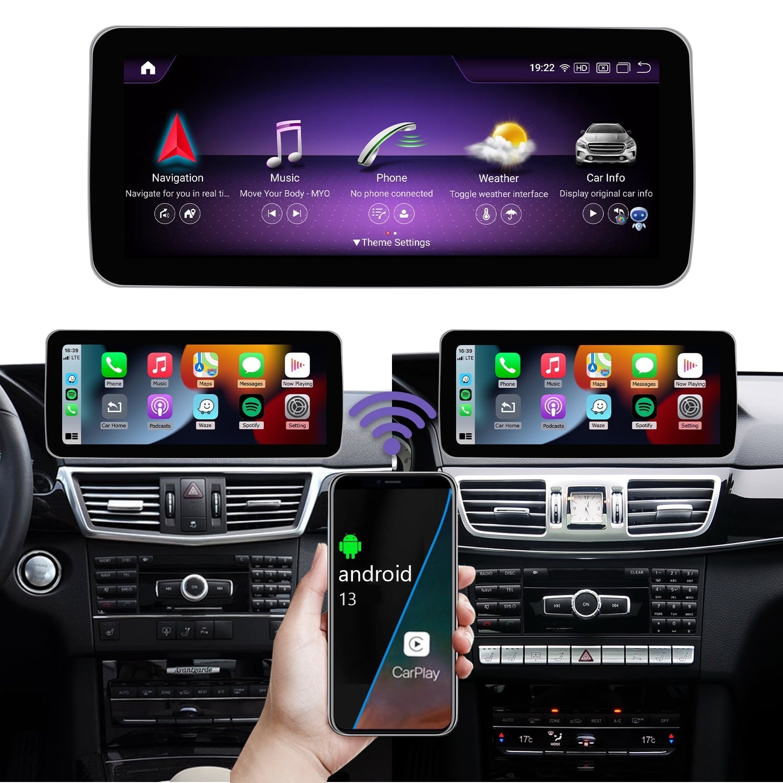 Mercedes-Benz Android Head Unit Road Top 12.3'' Android 13 Car Radio Wireless Carplay Touchscreen for Mercedes Benz E Class W212 2009-2014 Year, 8+256 GB Car Stereo, Support Wirless Android Auto, Navigation, Camera