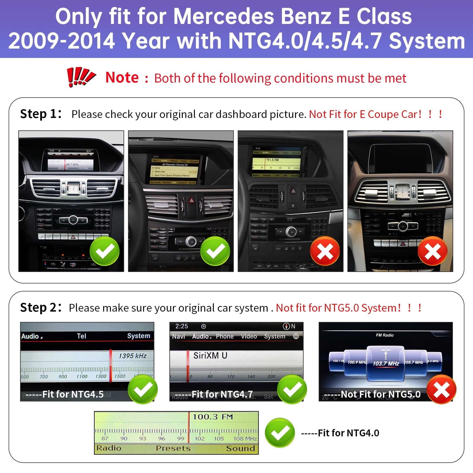 - 【Compatible Models and Year】Suitable for Mercedes Benz E Class W212 2009-2014 Year, such as Such as E200,E250,E300,E350,E400,E500,E550,E63 AMG 2009-2015 year. !!! But Not fit for E coupe C207 Car!!!
