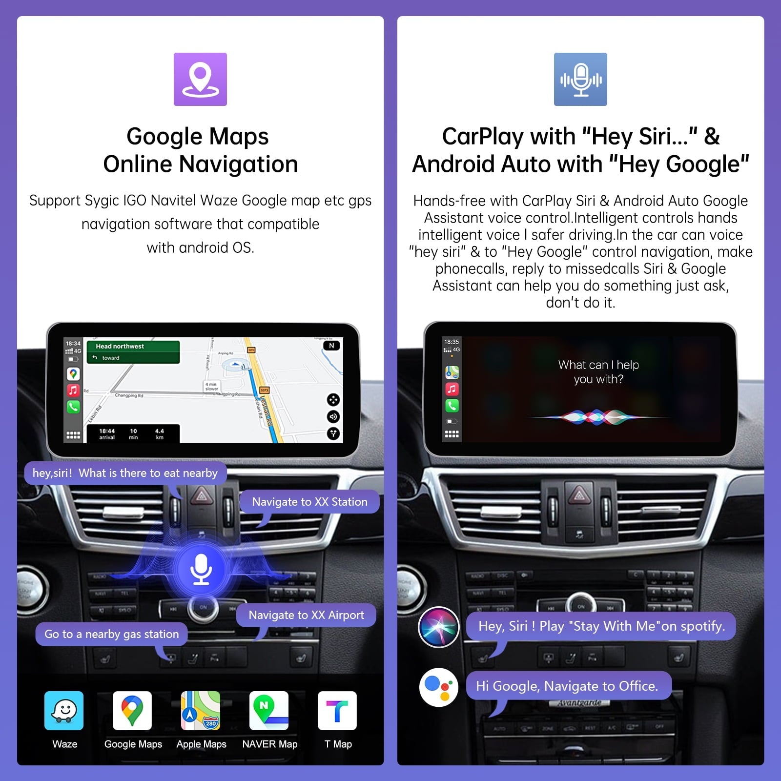 - 【Built in Wireless/Wired Carplay & Android Auto】Built in IOS carplay and android auto functions,It can work with Siri/ Maps/ Music/ Phone Call. listen to your favorite songs using iTunes, Apple Music or other app and access to messages. Keep your original car knob and steering wheel control.