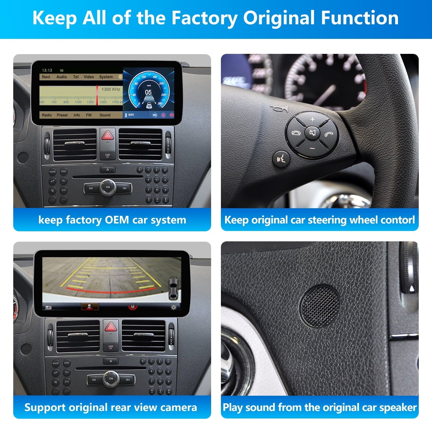 Keep all of the factory original function,such as: keep your original car radio, amplifier function, factory joystick control, original rear view camera and reverse trajectory and so on. When you switch this position, the sound will work through your original car speaker system, the option and control way are the same as your old,Not control by touching.