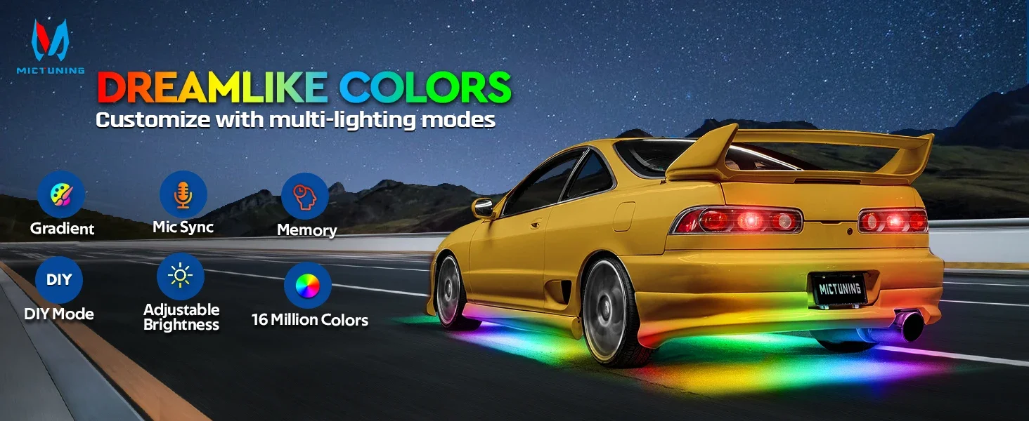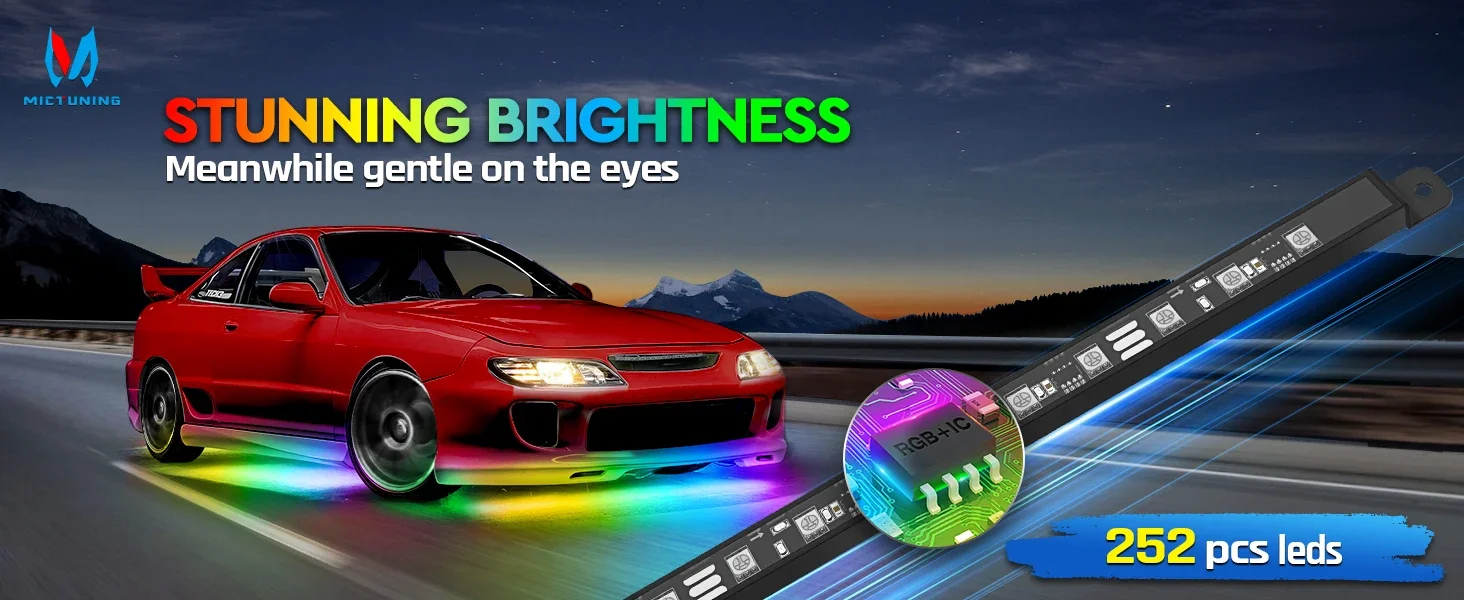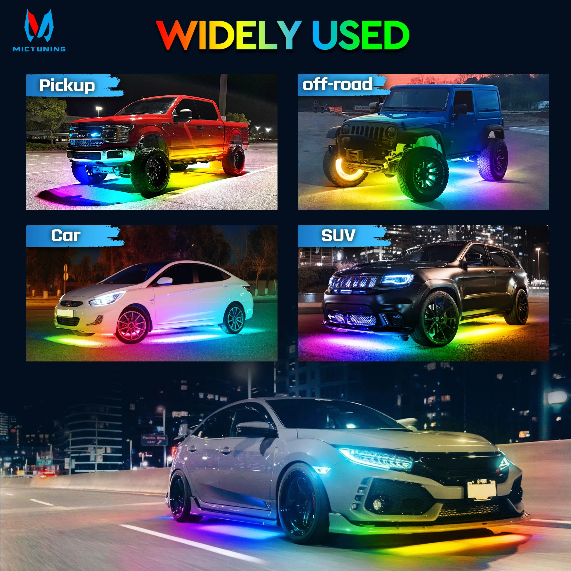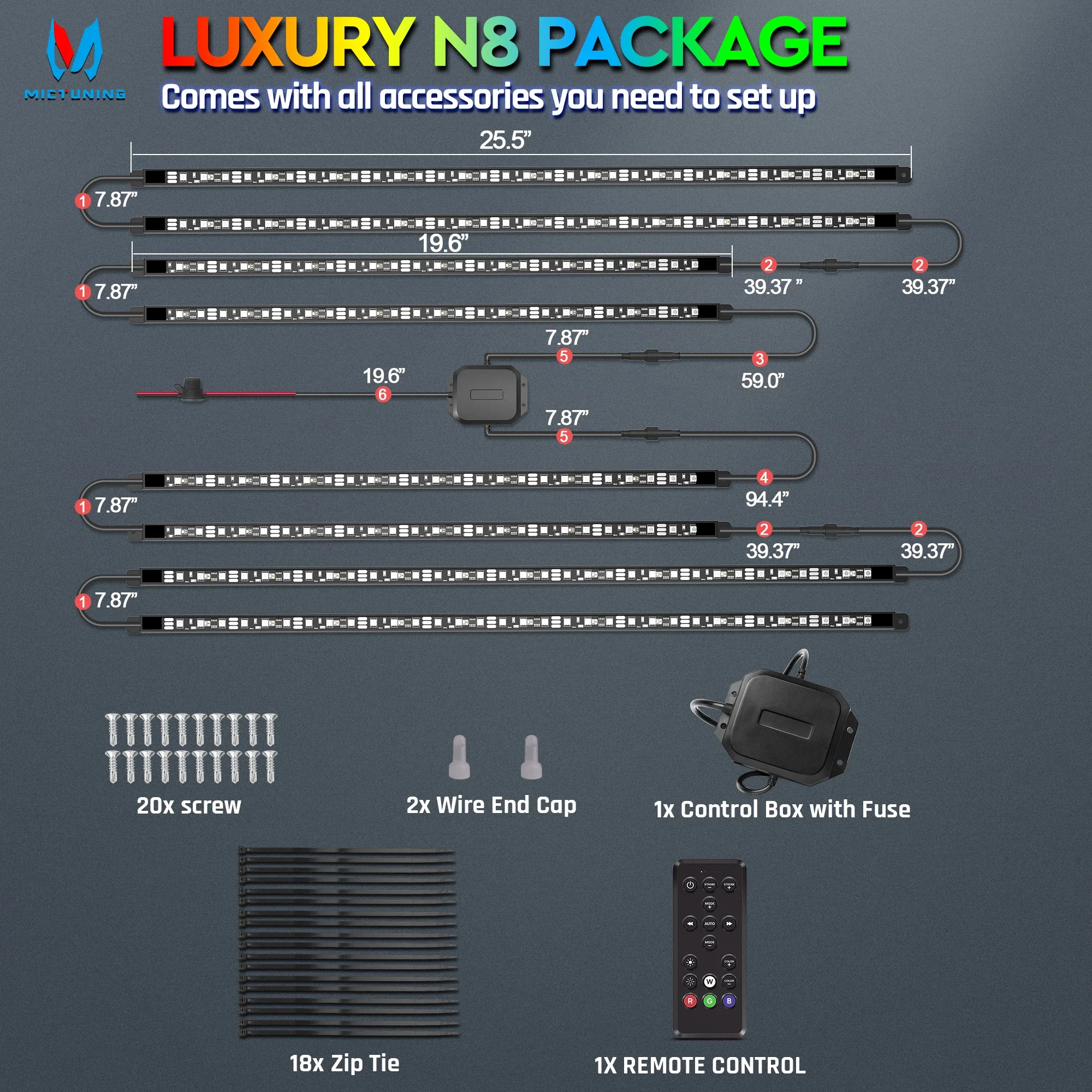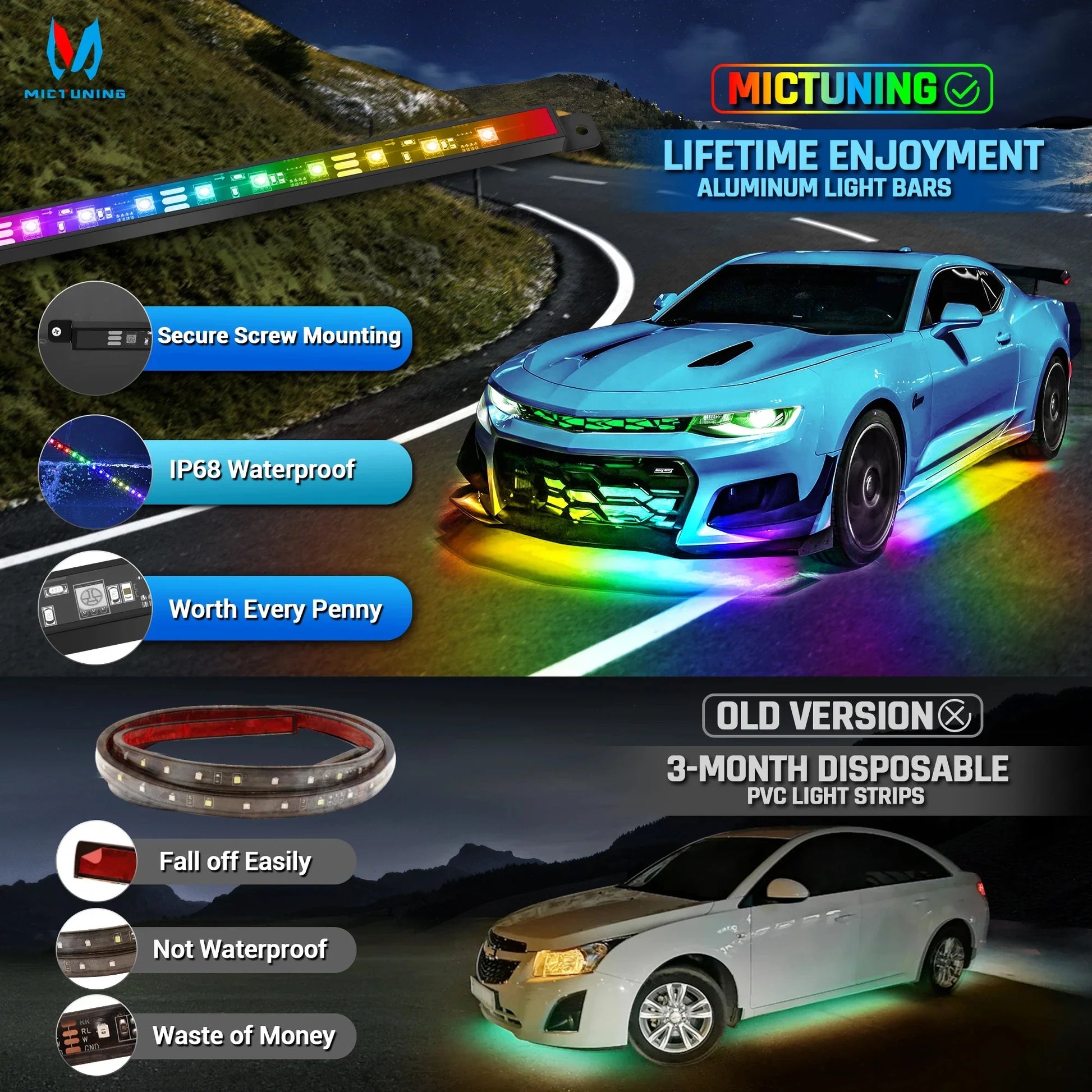 MICTUNING RGB+IC LED N8 Car Underglow Light Bar Kit Waterproof Wireless App & Remote Control For Cars Mercedes-Benz Rolls Royce
