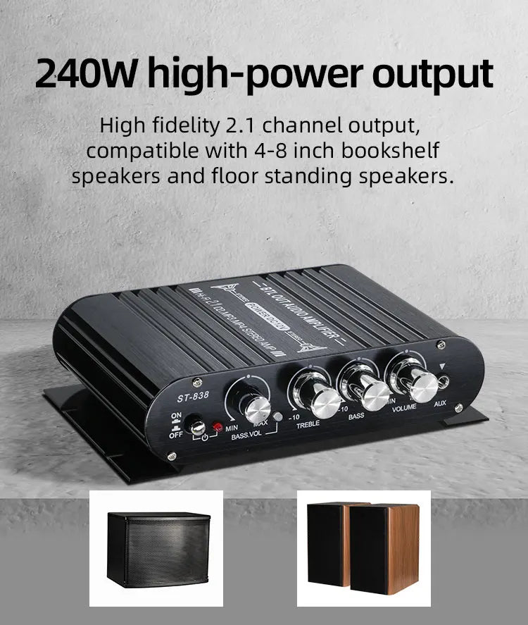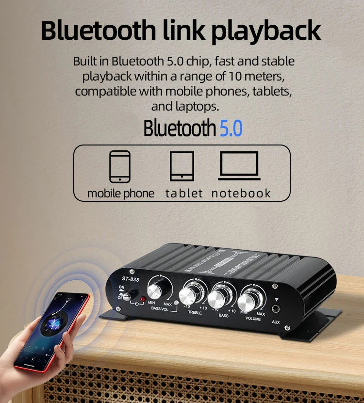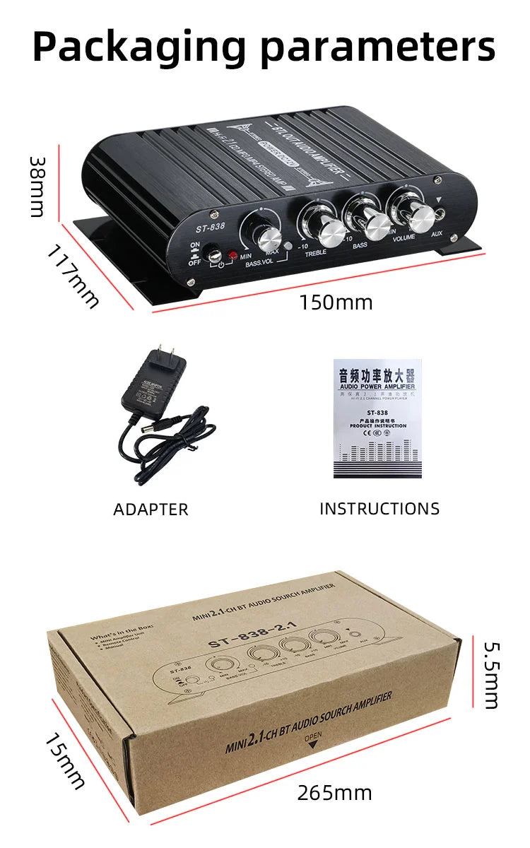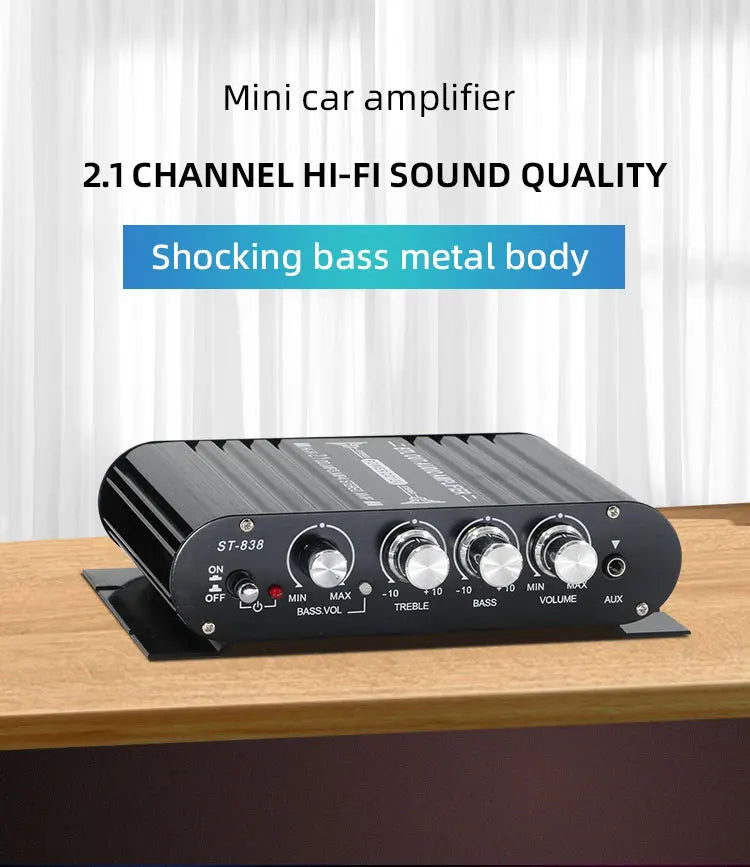 Mini car Amplificador Audio With Bluetooth5.0 2.1 Channel Supports Input from Mainstream Devices such as DVD, TV, Computer