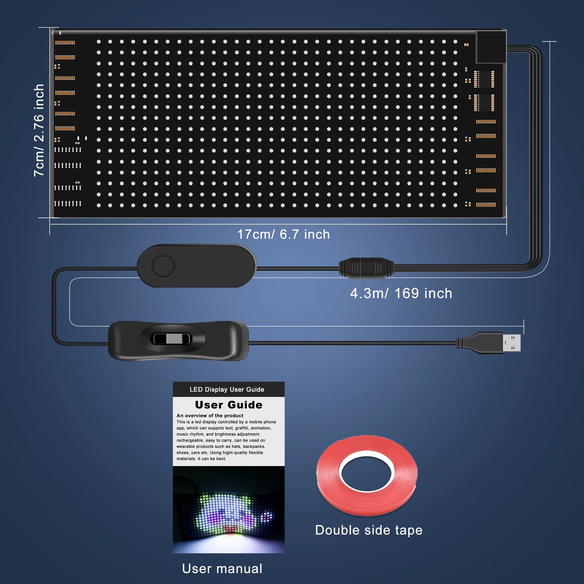 Mini LED Car Sign 6.7''x2.76'' Flexible USB LED Digital Sign App Control DIY Programmable Scrolling Sign for Car Party Festival
