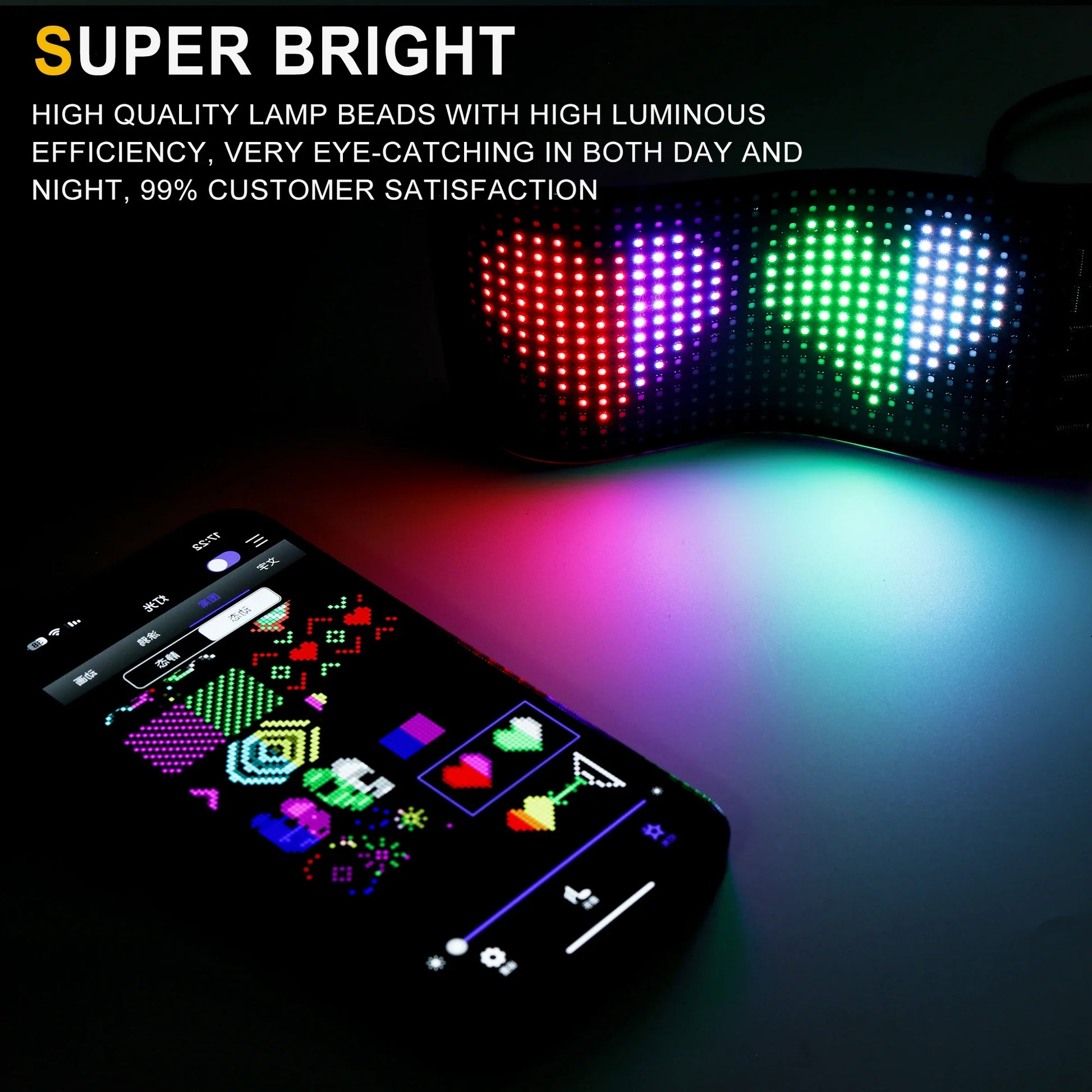 LED Sign for Car, Flexible LED Matrix Panel USB 5V Bluetooth Application Control DIY Programmable Scrolling LED Sign for Car Party Wedding Festival