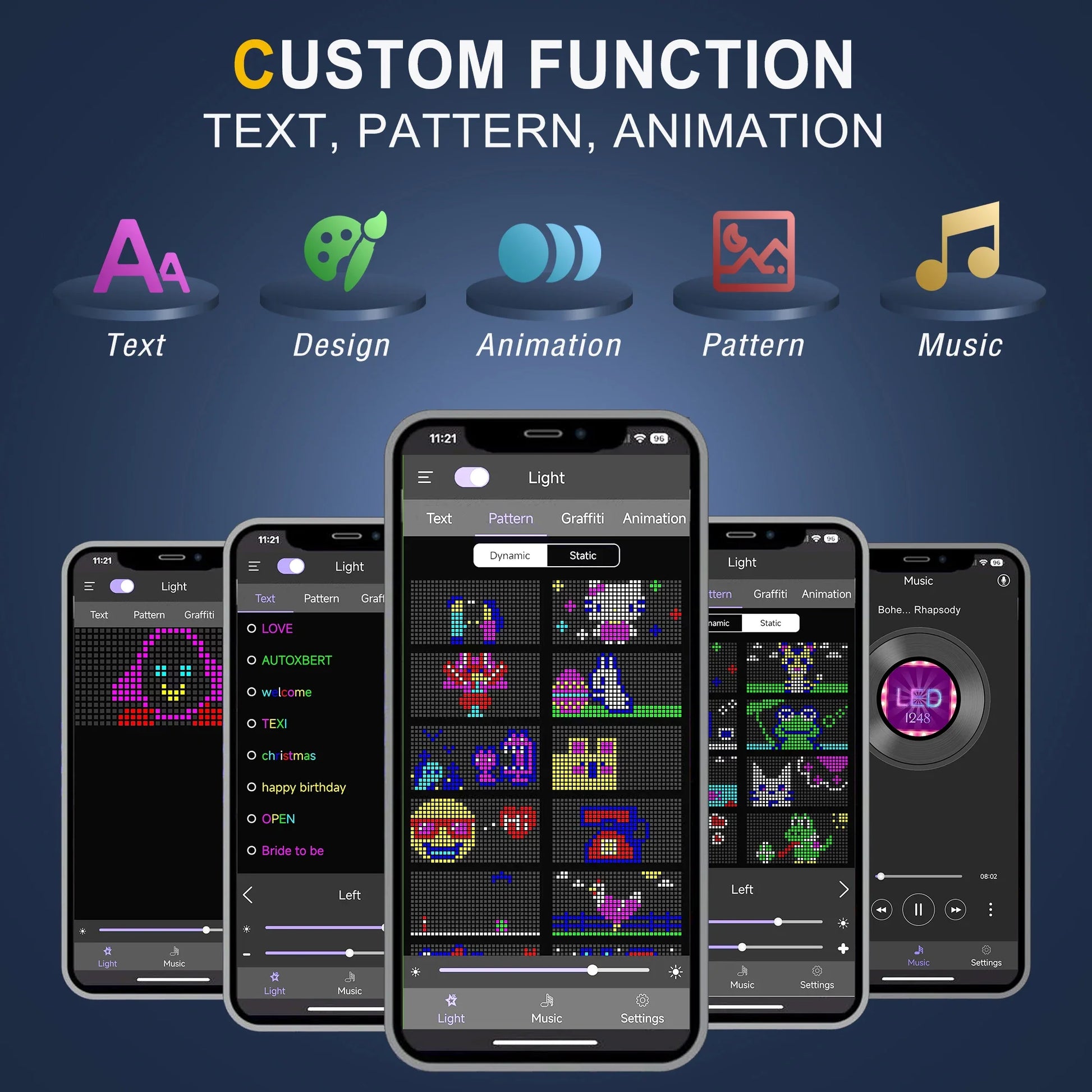 【Customized Function】This LED sign can be designed according to your needs and scenes DIY text, patterns, animations, hand-drawn graffiti, music rhythm, and can also adjust the brightness and speed,digital sign can perfectly meet your needs.