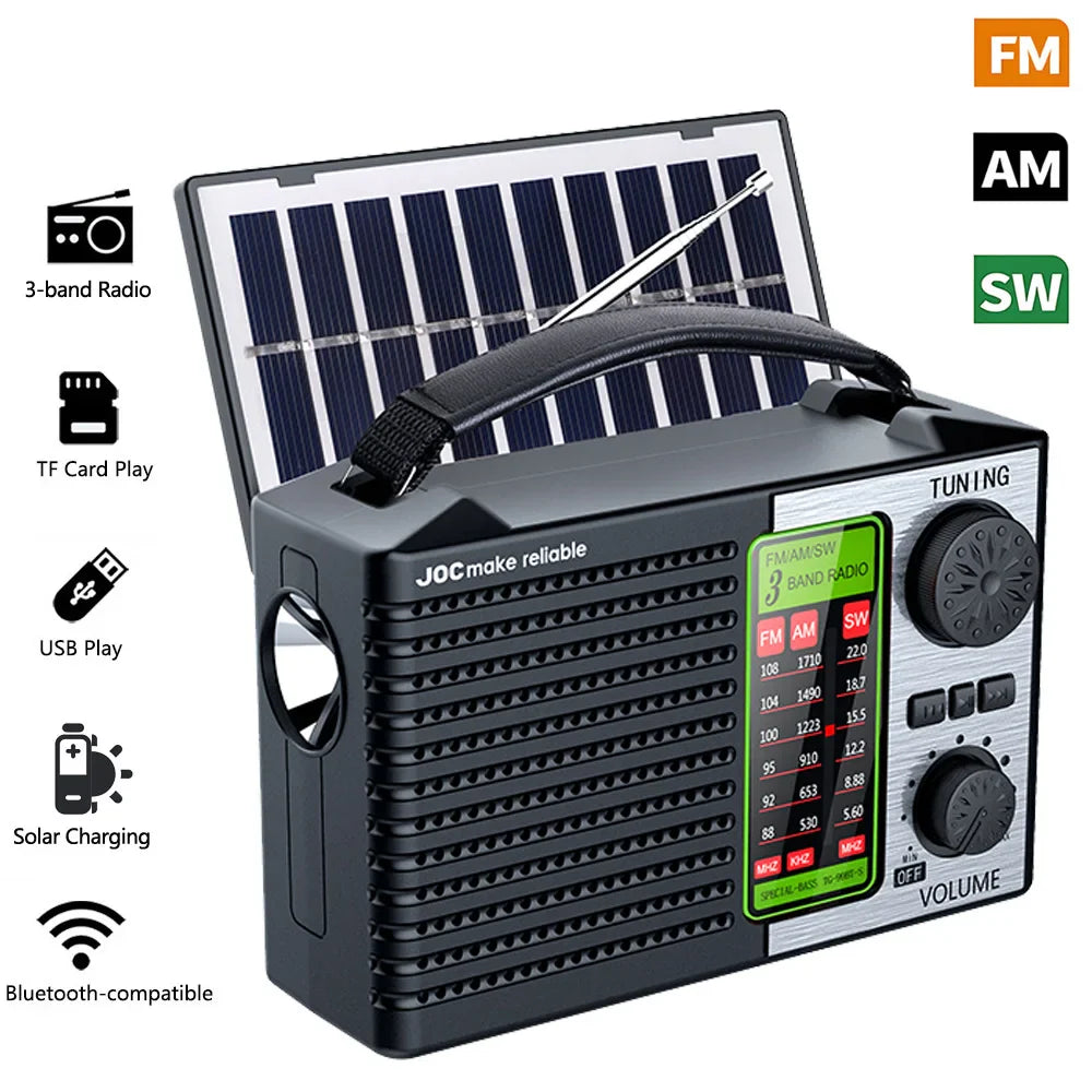 Multi-function Portable Radio FM AM SW Rechargeable USB TF Play Outdoor Solar Wireless Speaker Bluetooth With FM Radio Receiver