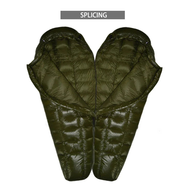 The filling capacity of goose down is 800 grams, and the total weight of the sleeping bag is 1350 grams.