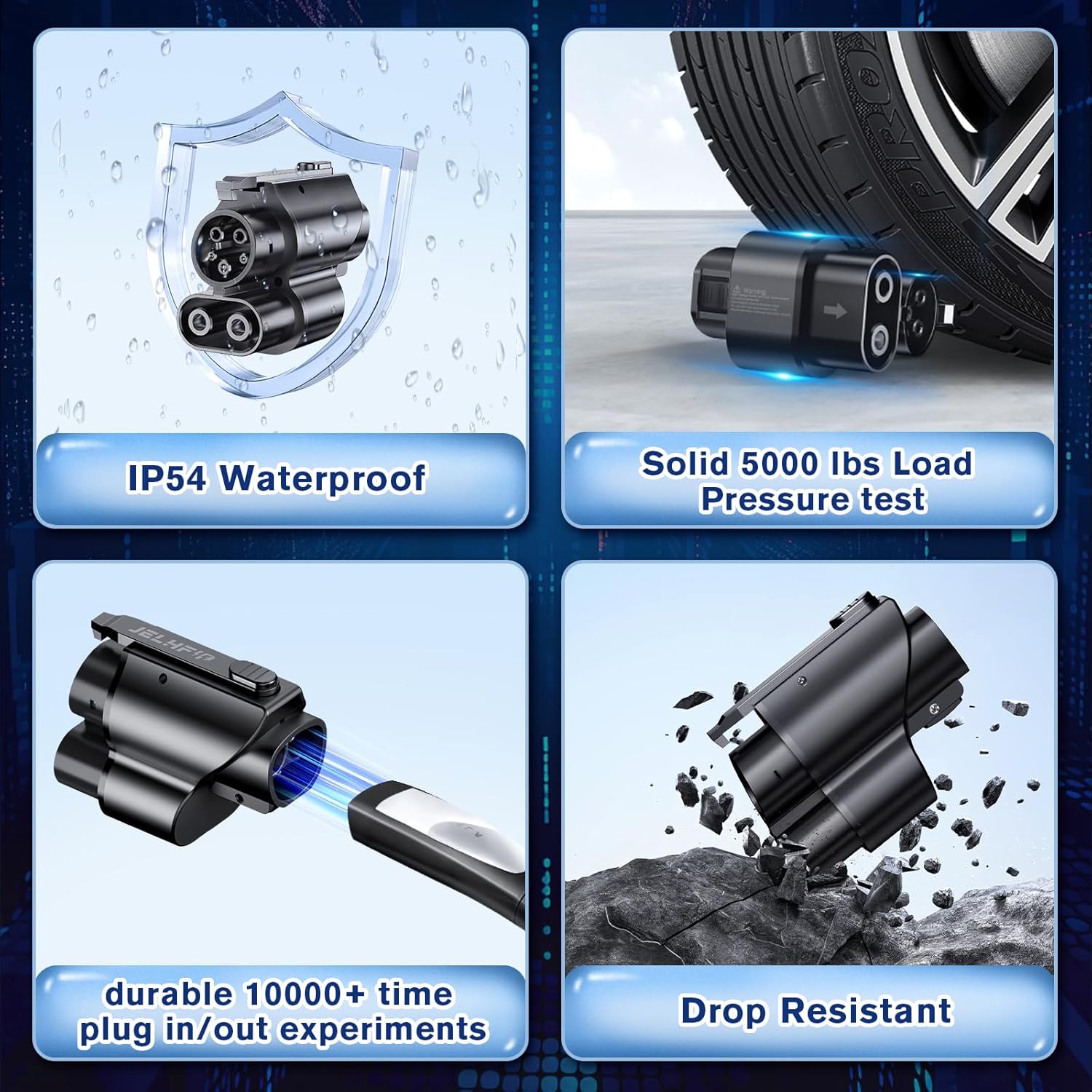 This adapter is built with weather-resistant materials, ensuring durability and protection against outdoor elements, making it suitable for outdoor charging scenarios.