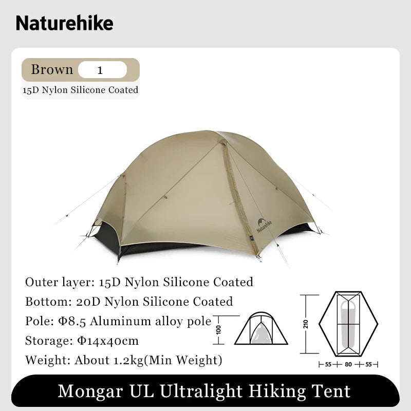 Naturehike Mongar UL 1-2 Person Tent 15D Nylon Ultralight Waterproof Backpacking Outdoor Hiking Cycling Travel Camping Tents