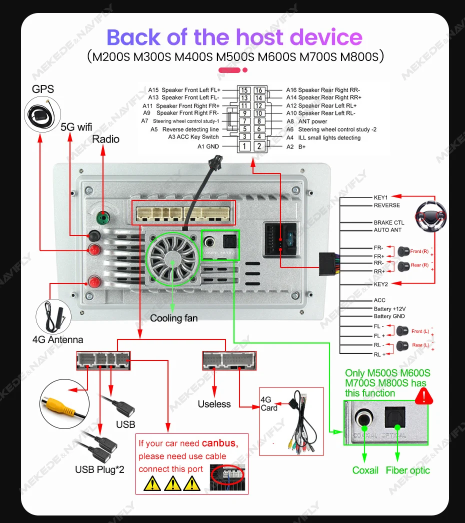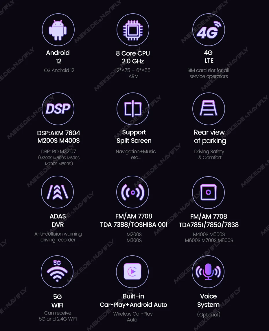 > Support 4G LTE and WIFI. (M200S M300S M400S M500S M600S M700S M800S) , no matter where you are driving, you will enjoy the fun from internet surfing , make it possible for online navigation/ music /movie ect.