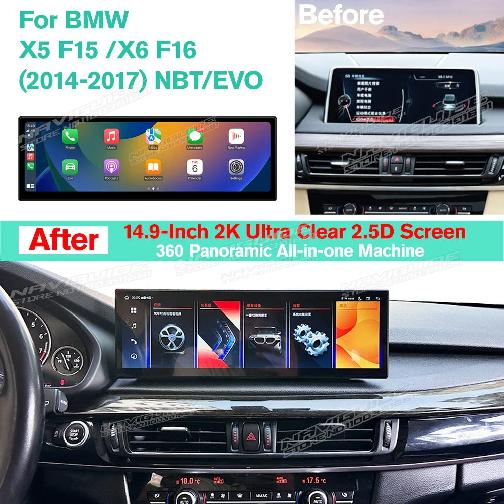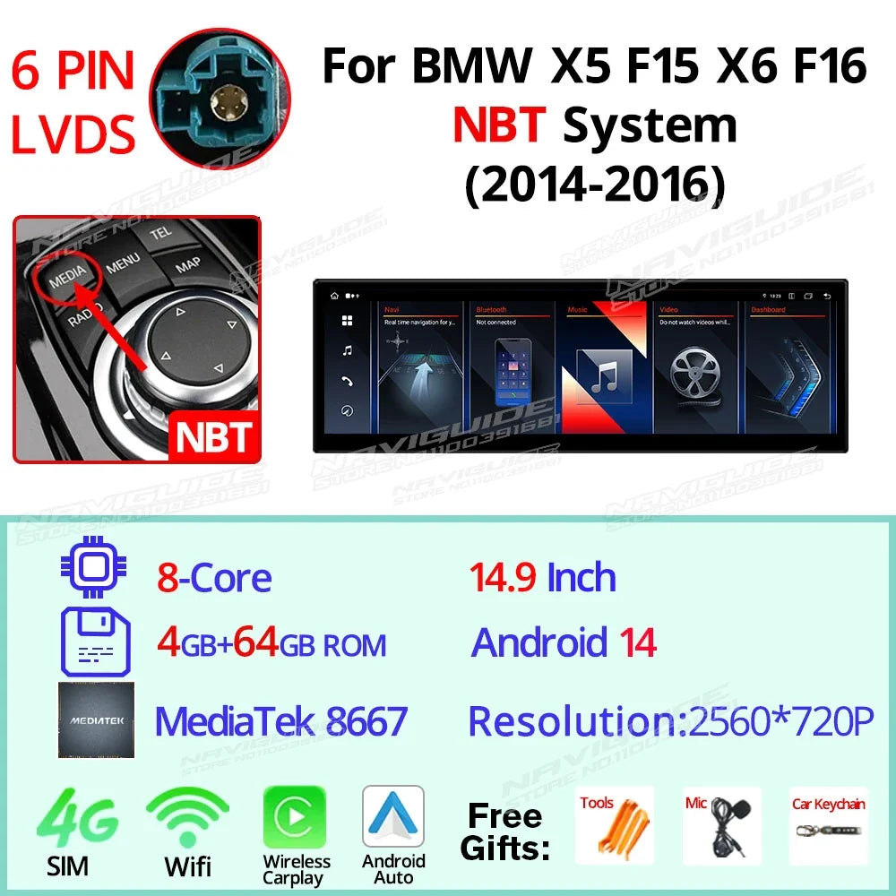 NAVIGUIDE 14.9'' Wireless CarPlay Auto For BMW X5 F15 X6 F16 2014-2017 NBT EVO System Car GPS Navi Multimedia Player Android 14