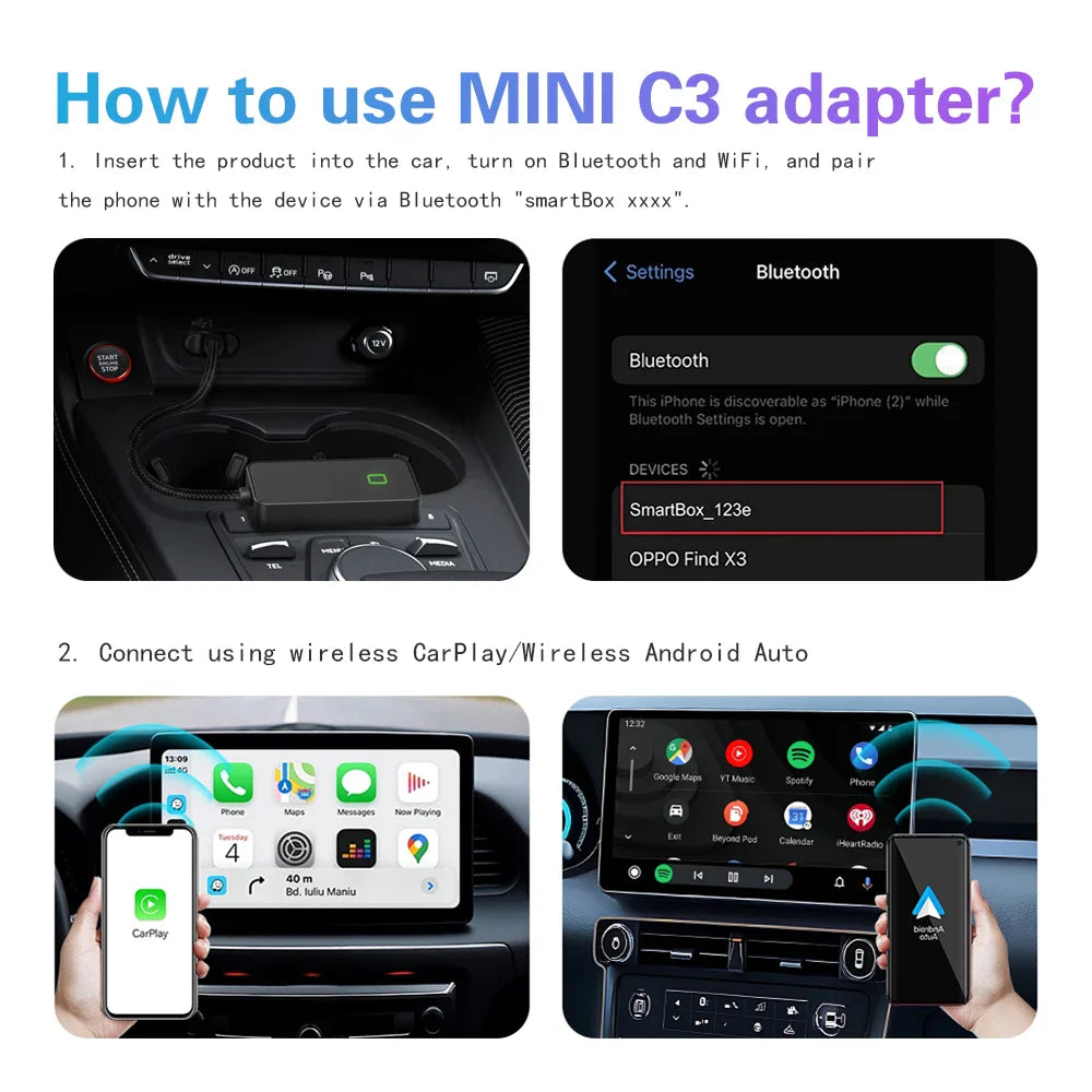 Mini C3 2 in 1 CarPlay Android Car Wireless Mini Box Adapter Smart Plug and Play Adapter Bluetooth AUTO Connention
