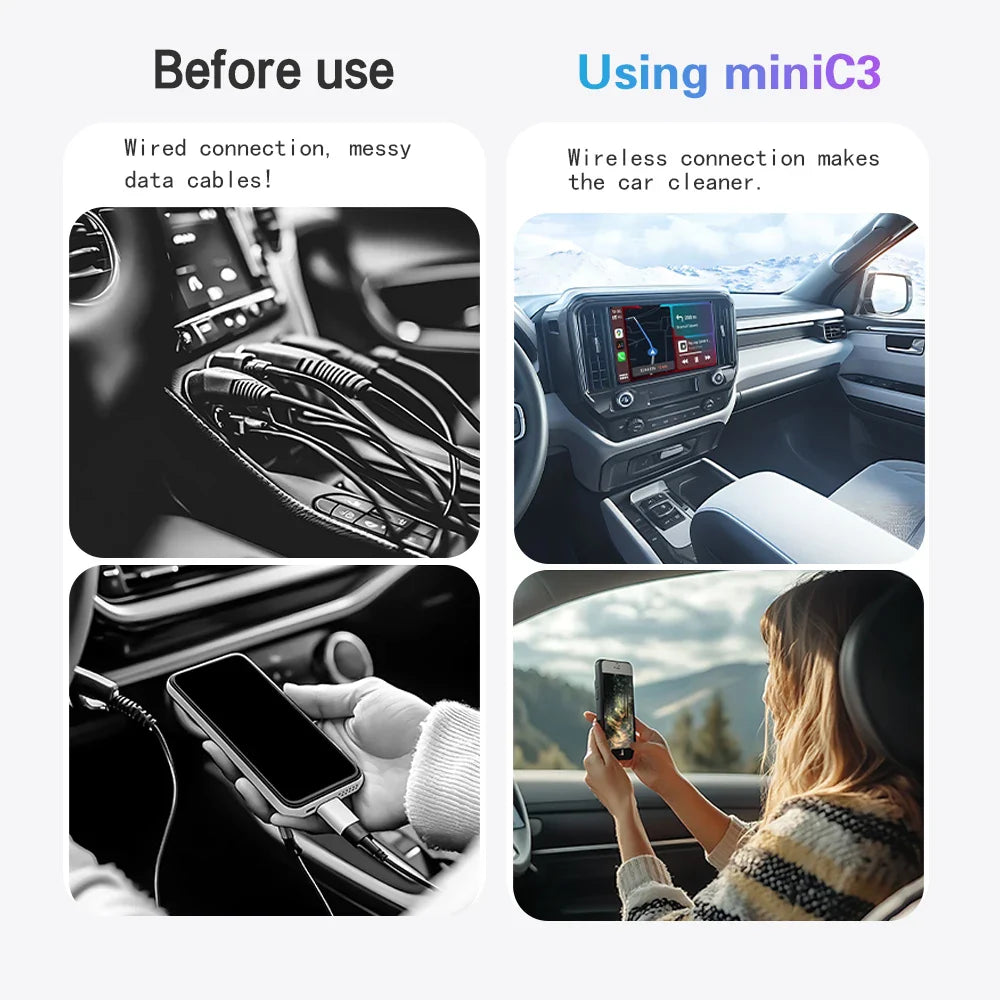 1. Wired to wireless CarPlay adapter, say goodbye to wires. USB plug-and-play installation, stable and fast, no need to disassemble the OEM radio.
