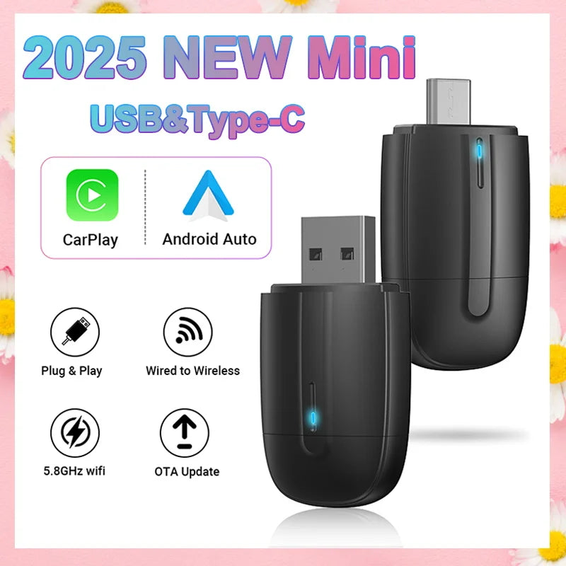 NEW Wireless CarPlay Android Auto Smart Mini Box USB Type-C Plug&Play WiFi Fast Connect Compatible with 98% Cars Carplay Adapter