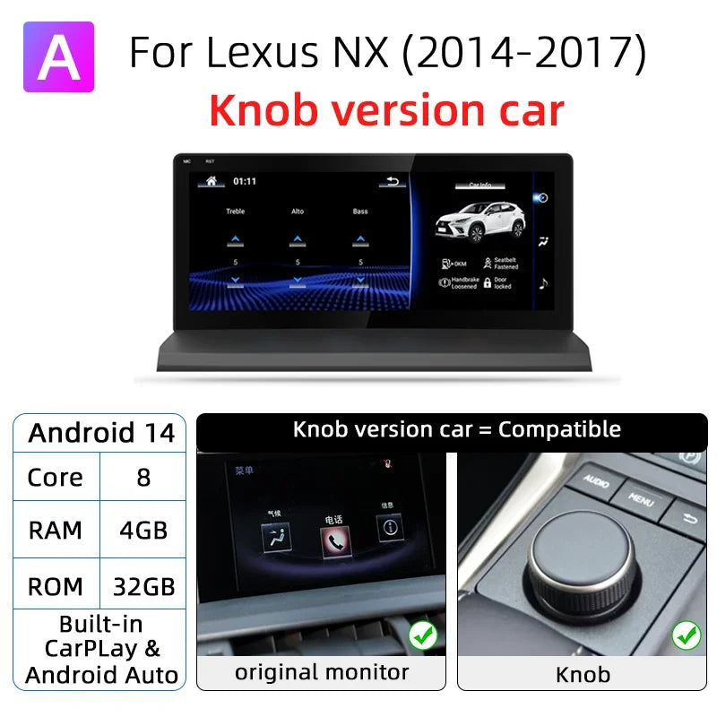 Nunoo Android 14 CarPlay Auto Radio For Lexus NX NX200 NX200T NX300h 2014-2021 Multimedia Navigation GPS DSP 4G WiFi