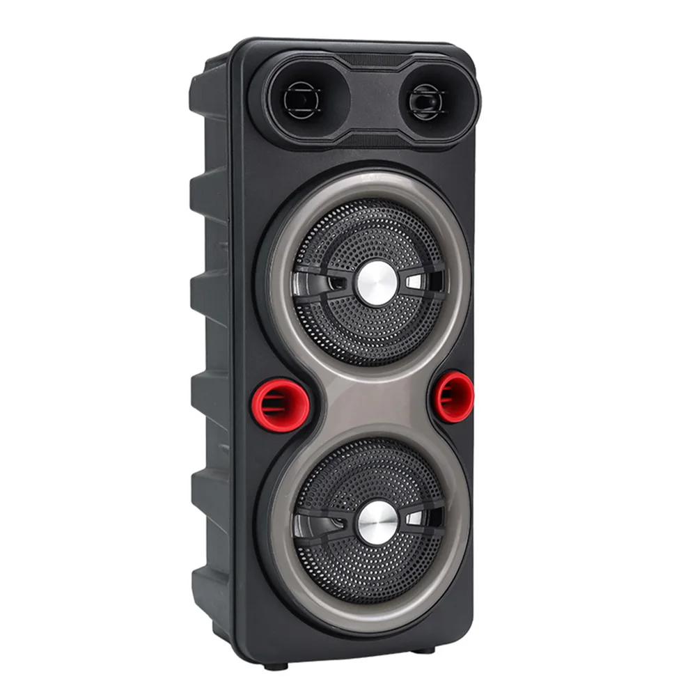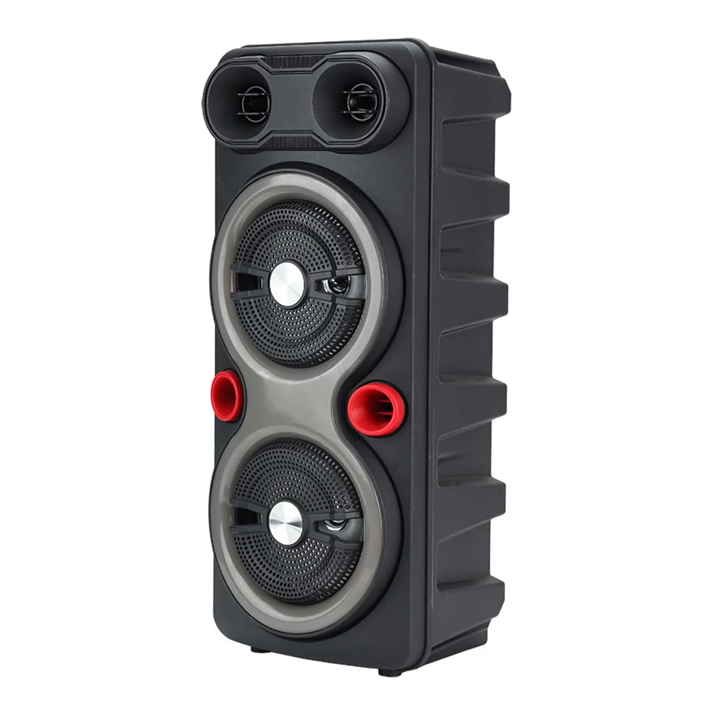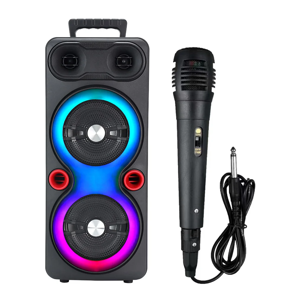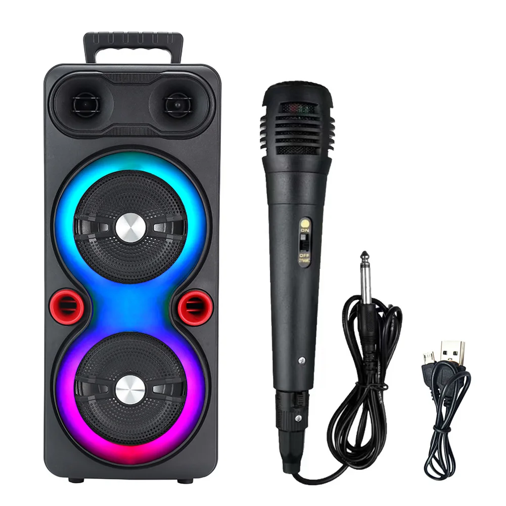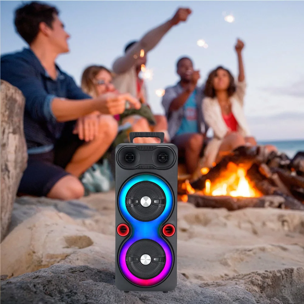 Dual Subwoofer Speakers Bluetooth-Compatible 5.0 6.5 Inch Stereo Subwoofer Outdoor Portable Speaker with Mic FM Radio LED AUX Karaoke Machine RGB Party Sound Box