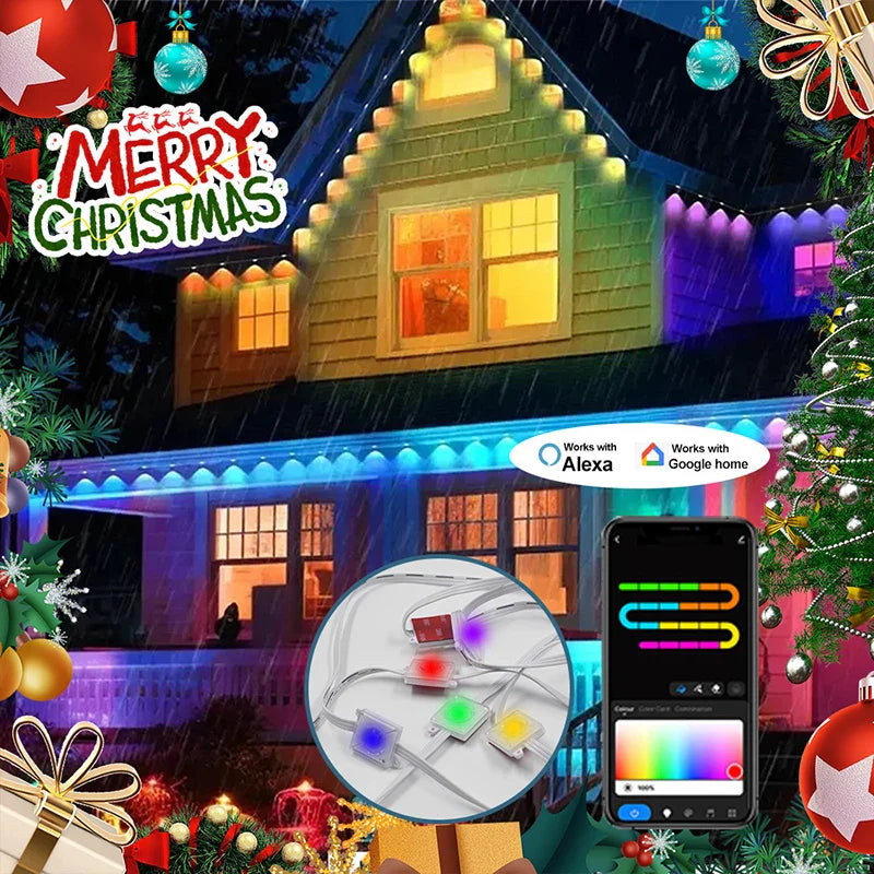 Outdoor Smart Eave Light 30LED15m 24V RGBIC Multi-Function App Control Christmas Decor Garden Garlands Halloween Holiday DIY