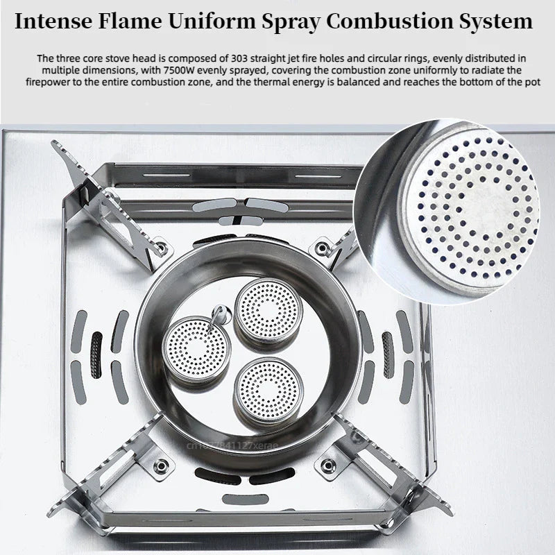1. Intense and uniform spraying combustion system, with balanced heat energy reaching directly to the bottom of the pot