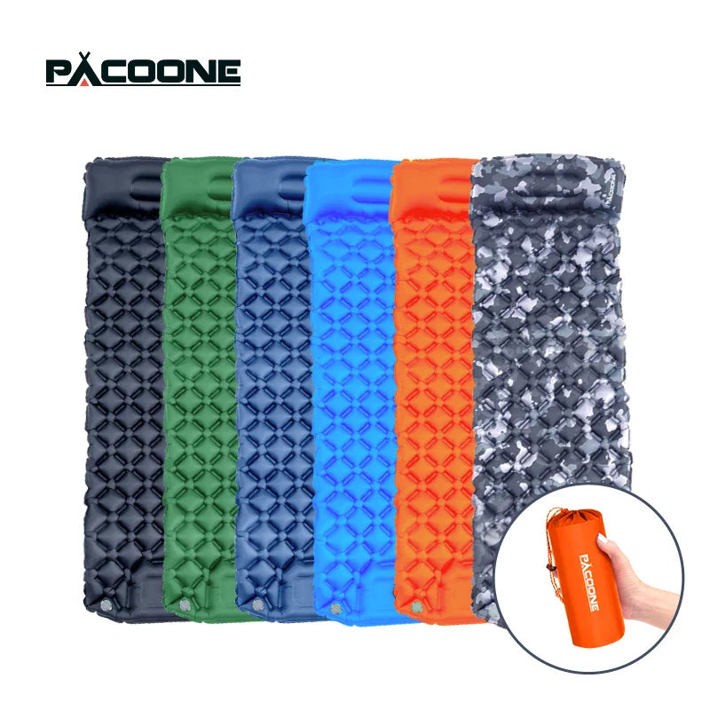 PACOONE Ultralight Outdoor Camping Sleeping Pad Air Mat Inflatable Mattress with Pillows Built-in Inflator Pump Travel Hiking