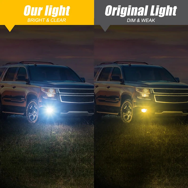 * 100% Advanced LED chips give out bright and white ray for clear visibility. Perfect choice if you want to upgrade your fog lights to LED clear lens driving fog lamp.