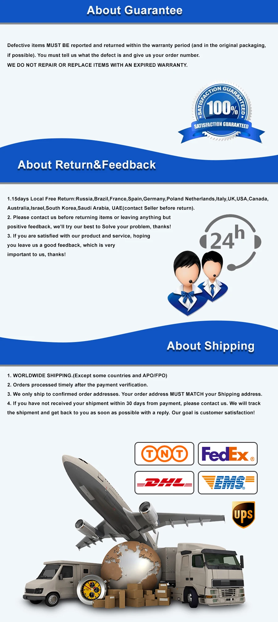 2.If the product has any problem, please don't make negative feedback, but contact us at once to deal with it. We will check and offer you suitable soluiton to protect your benefit.