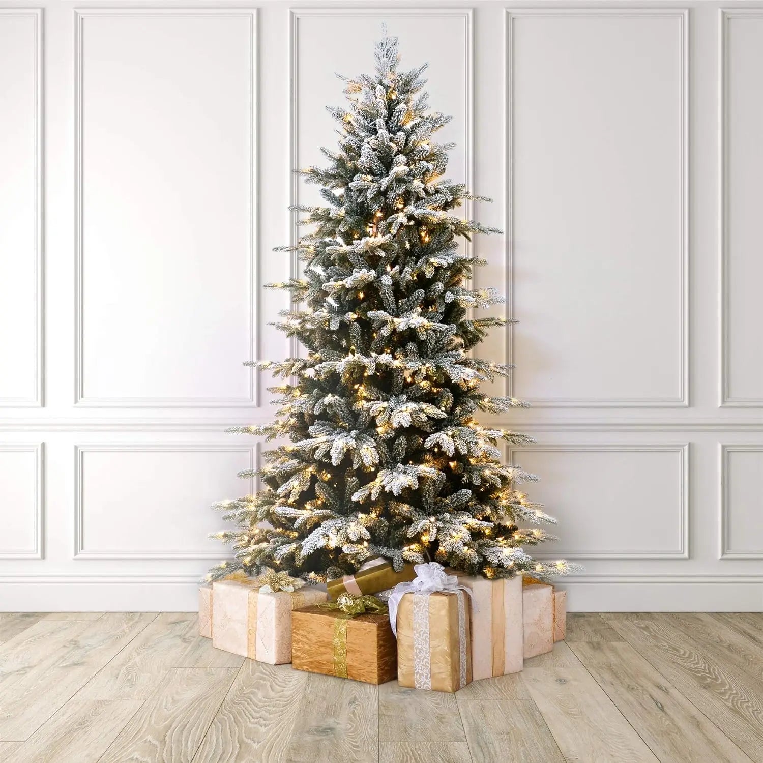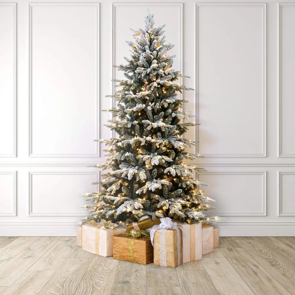 Plucked Natural Pine Pre Installed Lights Artificial Christmas Tree, 7.5 Feet, Transparent White Light