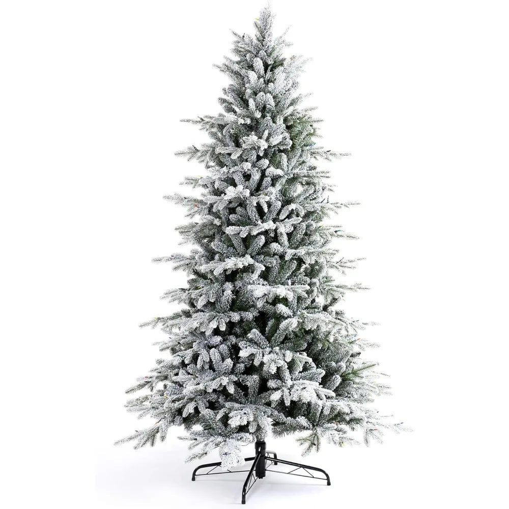 - A unique blend of flocked PE and PVC tips create a true-to-nature look leaving few gaps or spaces on the permanently affixed hinged branches, vertical internal branches, and garland-wrapped pole