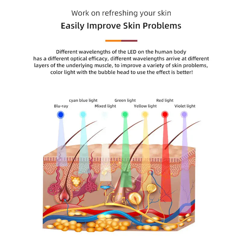 3.Multi-color LED light therapy function, which can smooth wrinkles, whiten and tender your skin effectively and safely without pain.