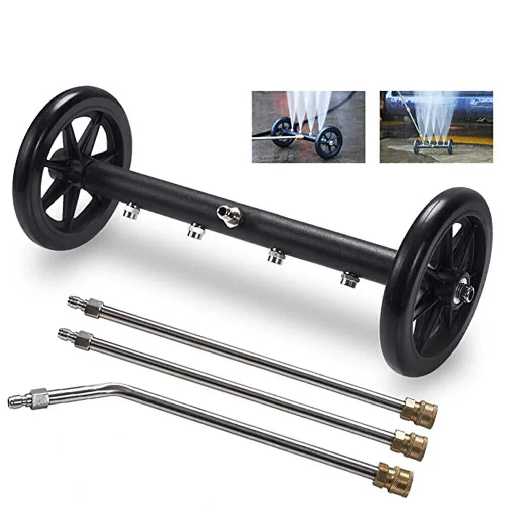 What you Get:Including 16 inch 2 functions-in-1 Pressure Washer Undercarriage Cleaner, 1-piece 14 inch 45 degree angled wand and 2-pieces 15 inch pressure washer extension wand. All parts have 1/4" Quick Connect.