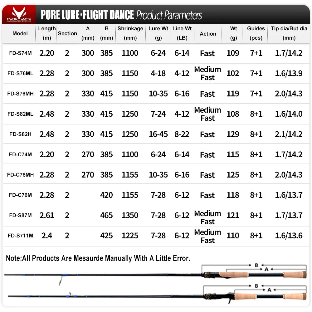 PURELURE DANCE S822H ML H Spinning Rod For Bass High Carbon Long Throwing Fishing Rod In FUJI Accessories, Plus Spinning Reel