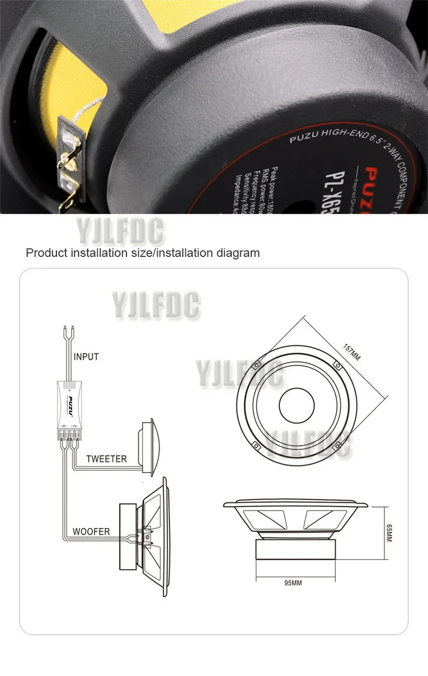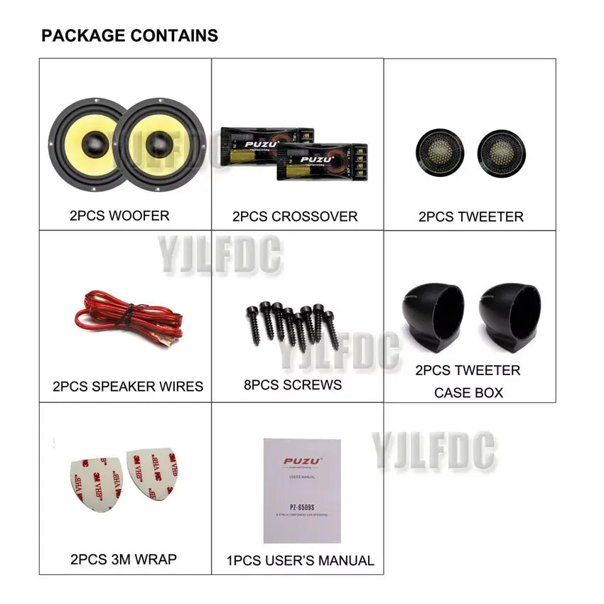PZ-6509S 6.5 Inch 2 Way Component Car Audio Speakers With 180W Maximum Output Power Glassfiber Cone